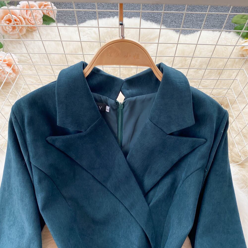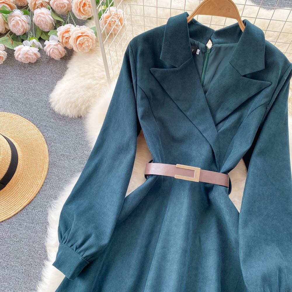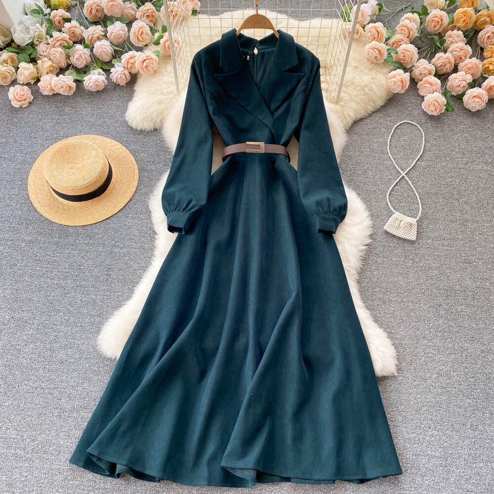 ヨーロッパとアメリカの秋と冬の新しいラペルウエスト痩身ドレス女性の腰の膝ヘップバーンスタイルのロングスカート オータム 秋物 ウィンター 冬物 ヨーロピアン lyxaj37124676026