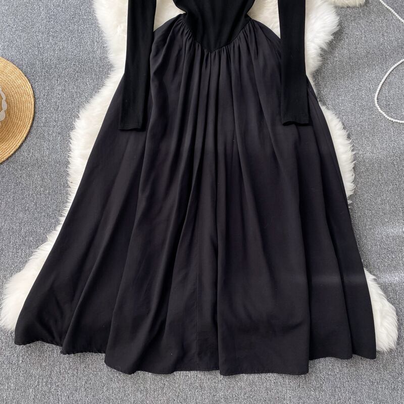 長袖ドレス女性の秋の新デザイン気質スリムウエスト不規則なスプライシング A ラインスカートビッグスイングロングスカート オータム 秋物 Aライン lyxaj23606550881