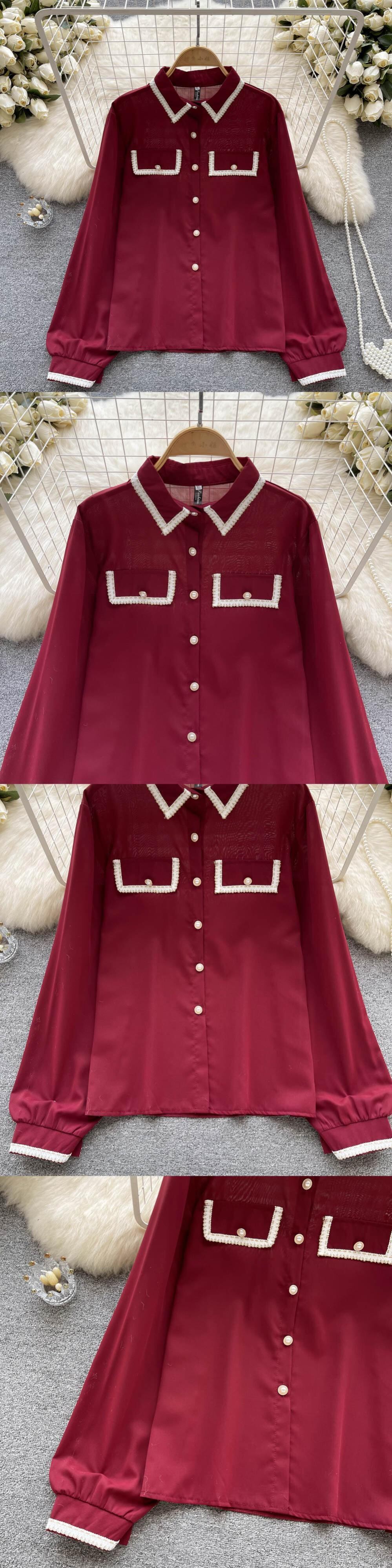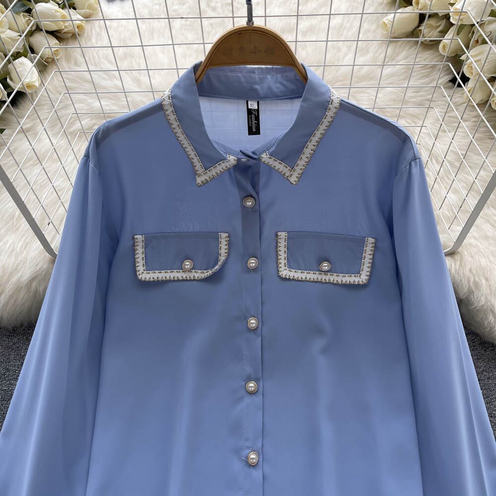 フランスの有名人の気質の長袖シャツ秋の女性のルーズで用途の広いポロカラーシャツ eign スタイルの美しい小さなシャツ ロング オータム 秋物 lyxaj52904652319