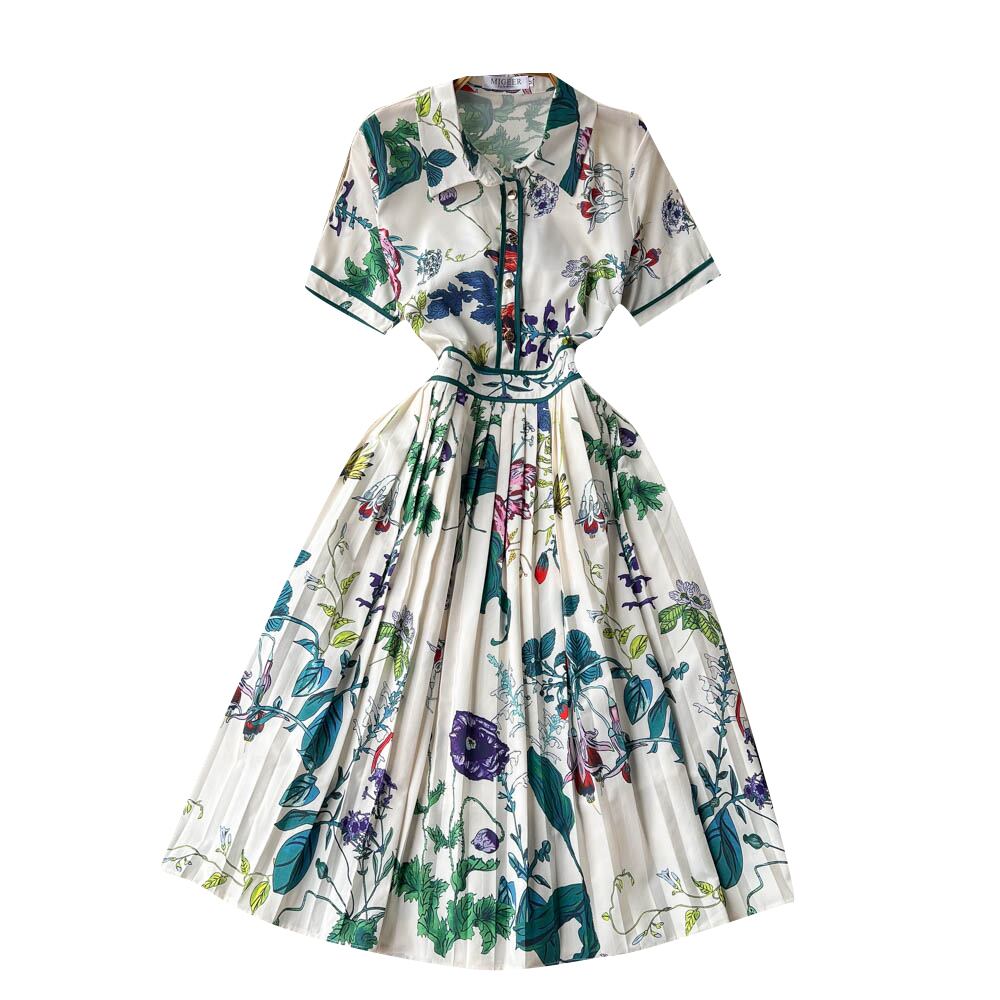 ヨーロッパとアメリカの ins セレブ気質シャツドレス女性の夏の半袖ポロ襟スリムフィットプリーツ a ラインスカート サマー 夏物 Aライン ヨーロピアン lyxaj80576701317