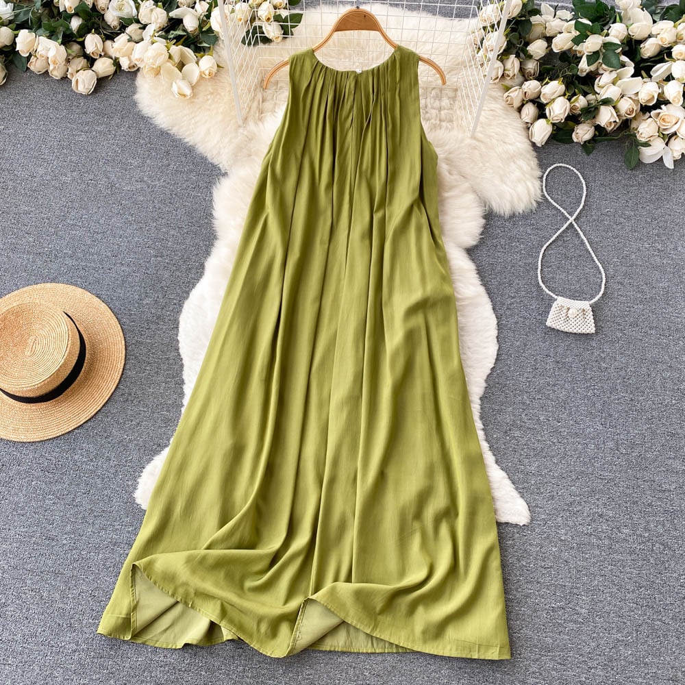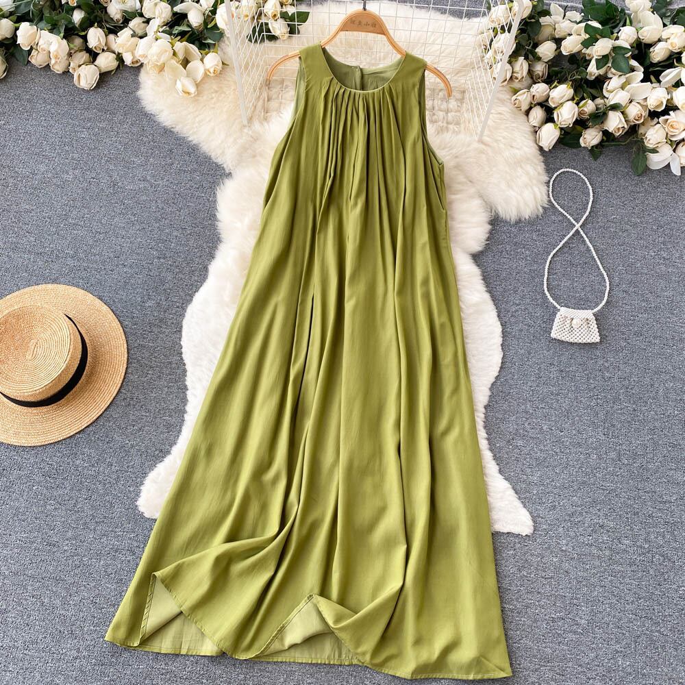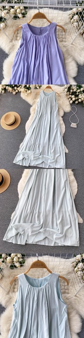 ベーシックなスタイルのゆったりとした薄手のノースリーブ ベスト ドレス夏の婦人服洋ナシ形海辺の休日ロング スカート潮 サマー 夏物 lyxaj54902635363