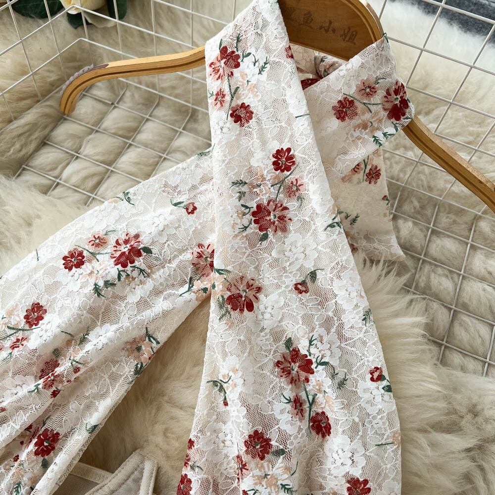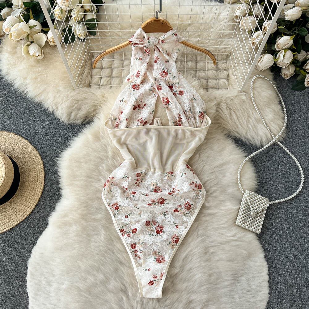 純粋な欲望スタイル吊りネック中空セクシーなワンピースパンツ夏の女性のウエスト痩身レース花柄底入れ下着 サマー 夏物 lyxaj61426514437