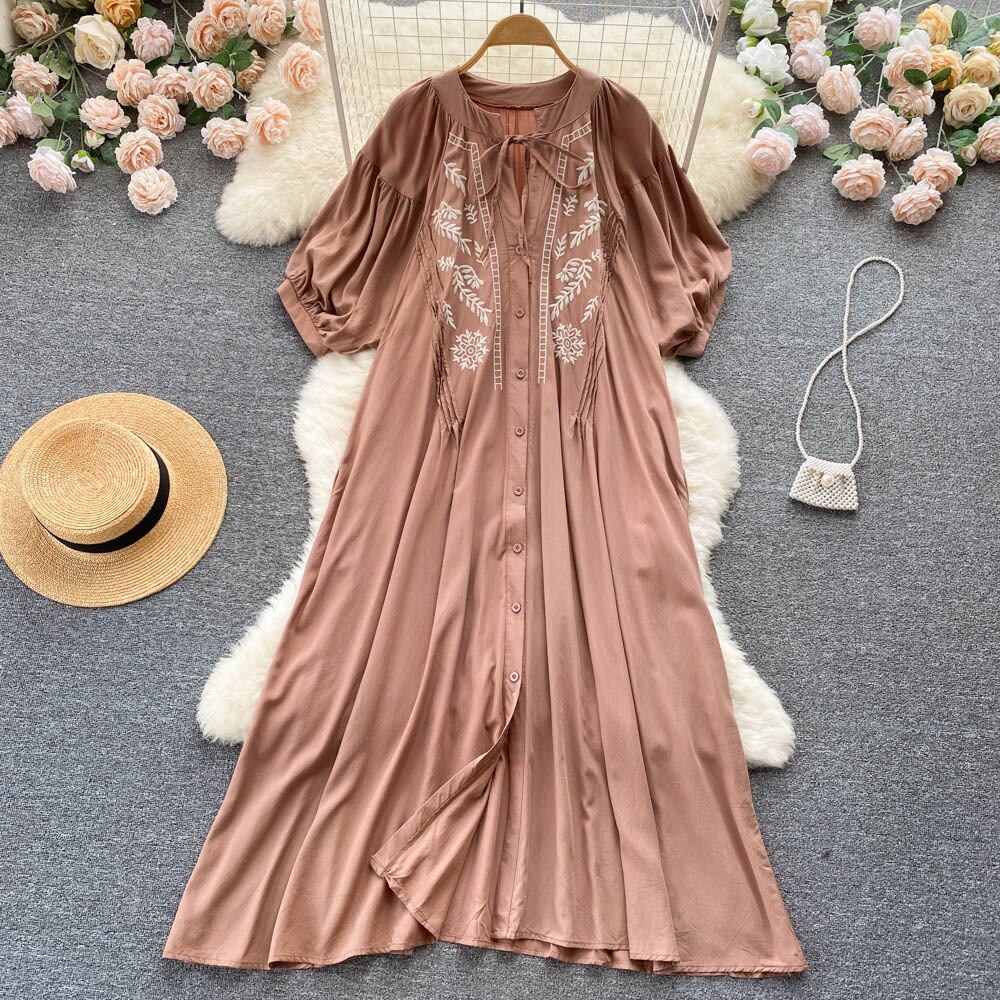 -高品質の寒風シックな美しい刺繍の半袖ドレス夏の女性のフランスの気質のシャツのスカート サマー 夏物 lyxaj37548291173