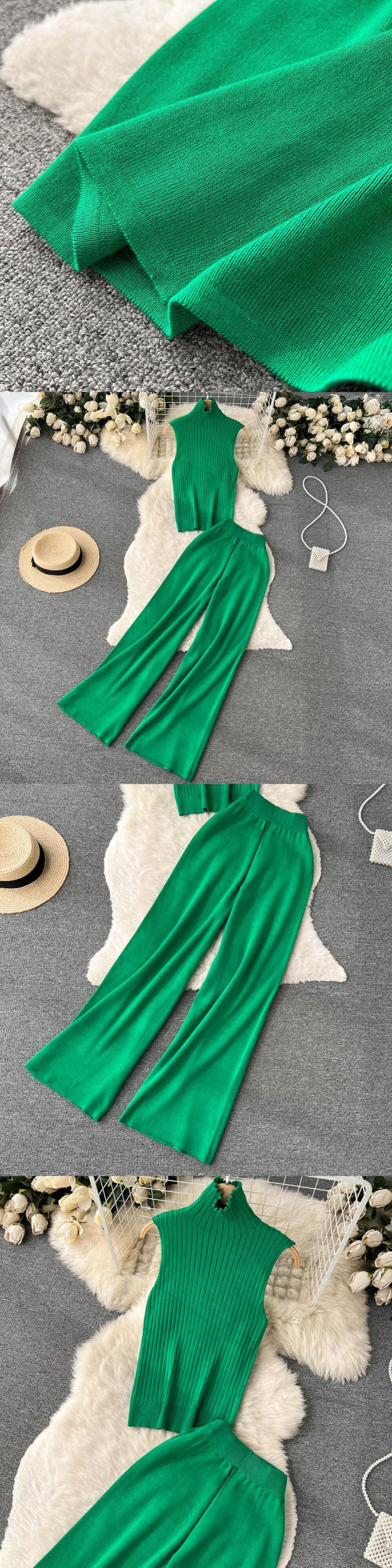 秋の新作怠惰なニットスーツの女性のロングショールカーディガン + タートルネックセーター + ワイドパンツ 3 点セット オータム 秋物 lyxaj77893791308
