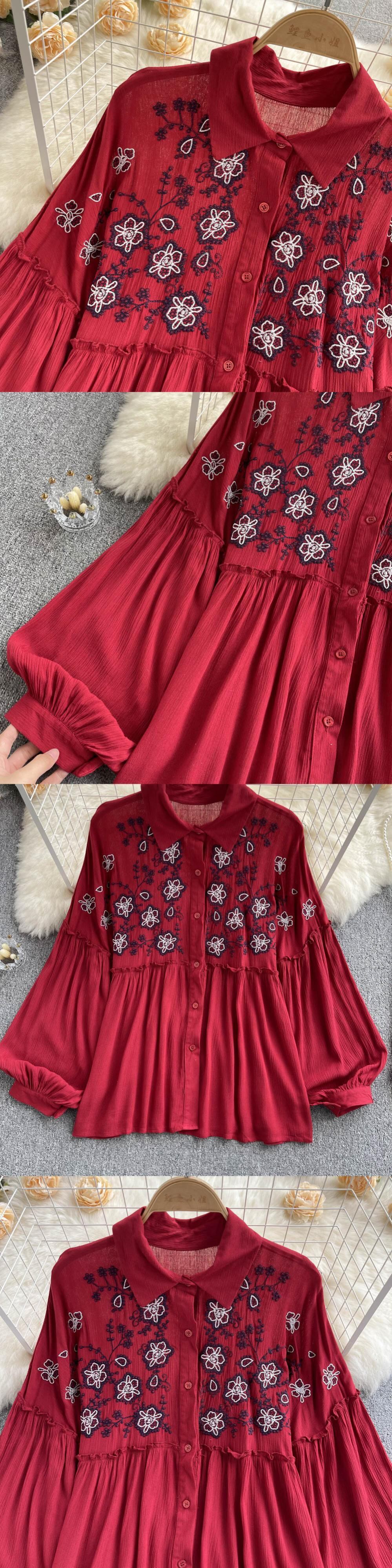 レトロなエスニックスタイルの重工業刺繍シャツ女性の年齢を減らすパフスリーブルーズオールマッチホリデートップ女性の春と夏の新しいスタイル スプリング 春物 サマー 夏物 lyxaj42518699489
