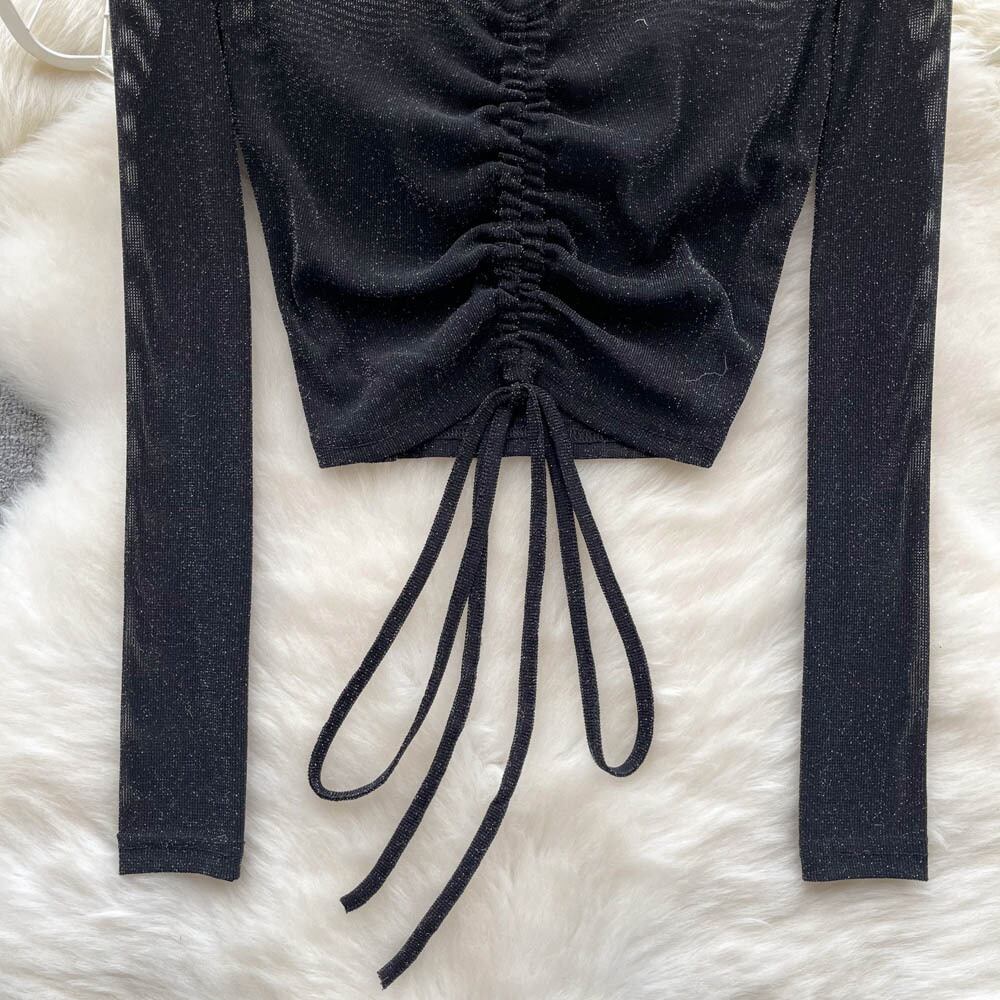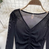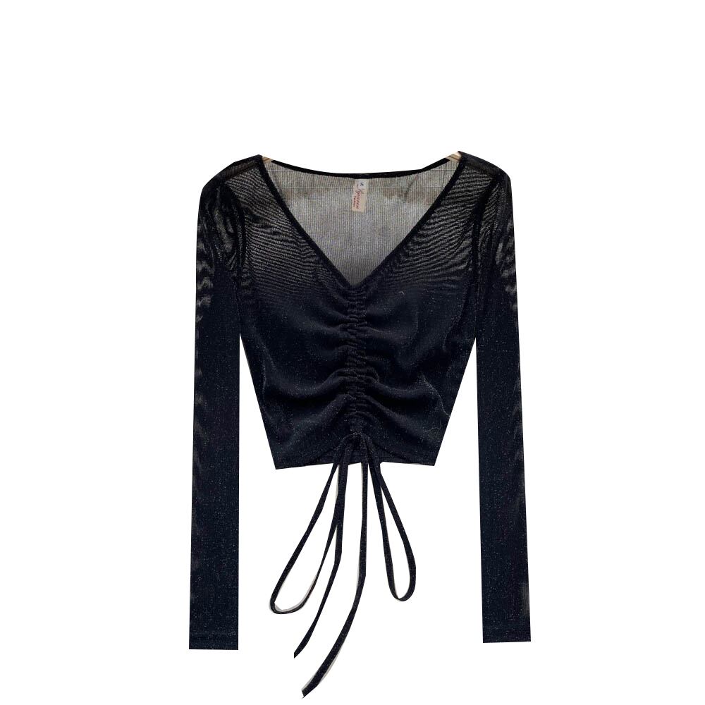 秋新作 巾着 ネクタイ Vネック セーター レディース ショート プルオーバー デザインセンス 底入れ メッシュ糸 洋風 上潮 オータム 秋物 lyxaj21489799230