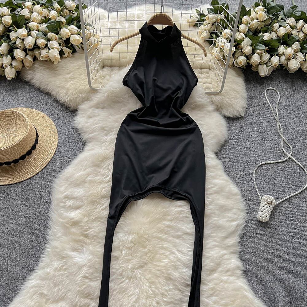 センス サスペンダー ドレス 女性 夏 不規則 ぶら下げネック 純粋な欲望 スタイル セクシー ノースリーブ ヒップ ショート スカート サマー 夏物 ピュア lyxaj21093150004