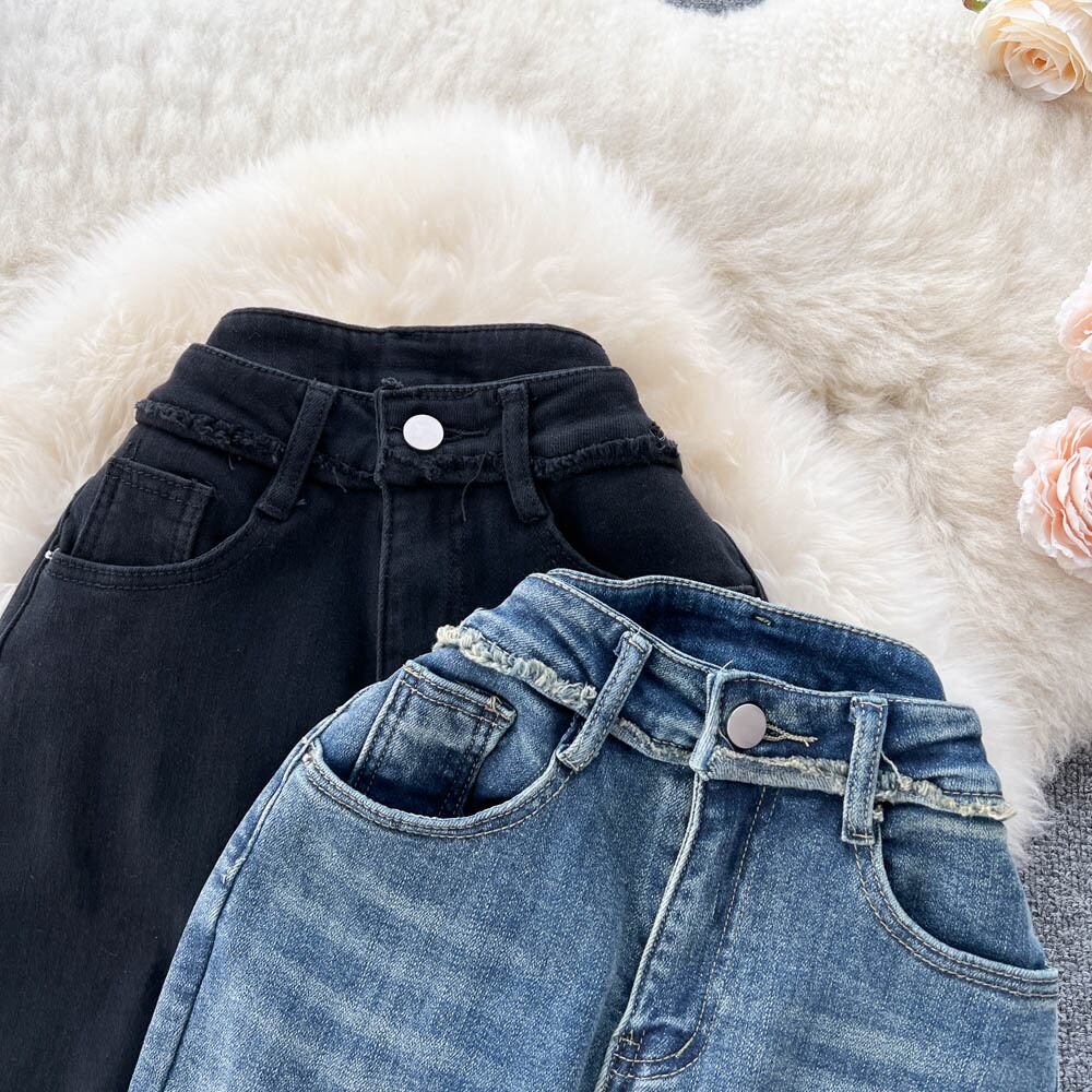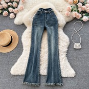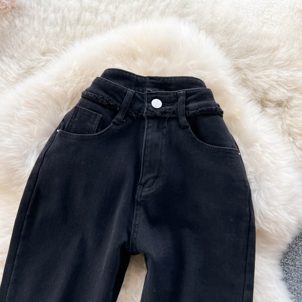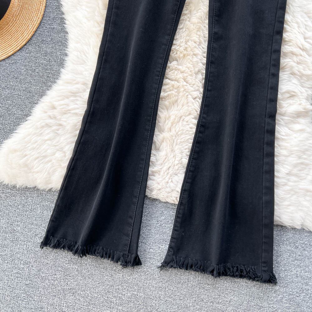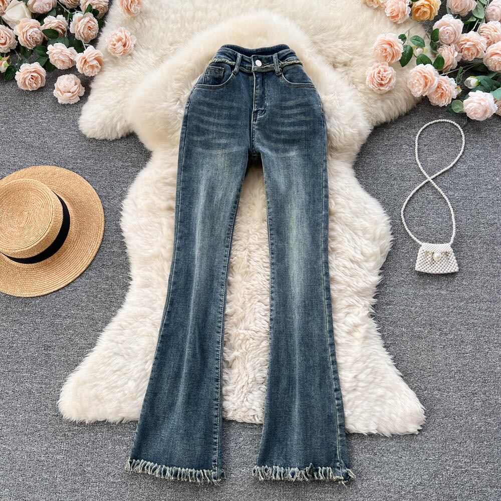 秋と冬の新しいレトロ生エッジマイクロフレアジーンズ女性のハイウエスト弾性スリムスリムモップカジュアルズボン ハイウェスト レッド エラスティック 伸縮 オータム 秋物 ウィンター 冬物 lyxaj35298917620