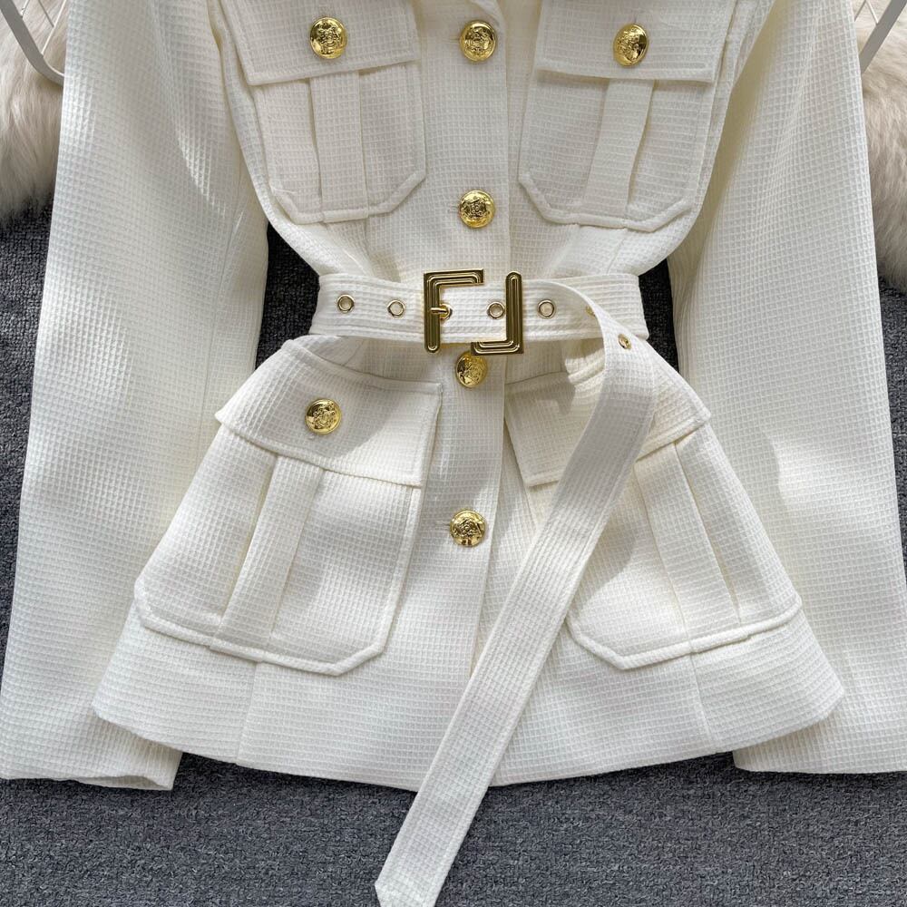 ヨーロッパとアメリカのinsスタイル2022秋冬の新しいデザインのボタンウエストストラップミッドレングスのフレンチスタイルの小さなフレグランスジャケット オータム 秋物 ウィンター 冬物 ヨーロピアン lyxaj87637655848