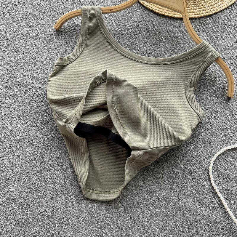 ホットなデザインセンスニッチなチェストパッド付きスポーツキャミソール夏女性アルファベットプリントノースリーブショートトップ サマー 夏物 lyxaj21088933218