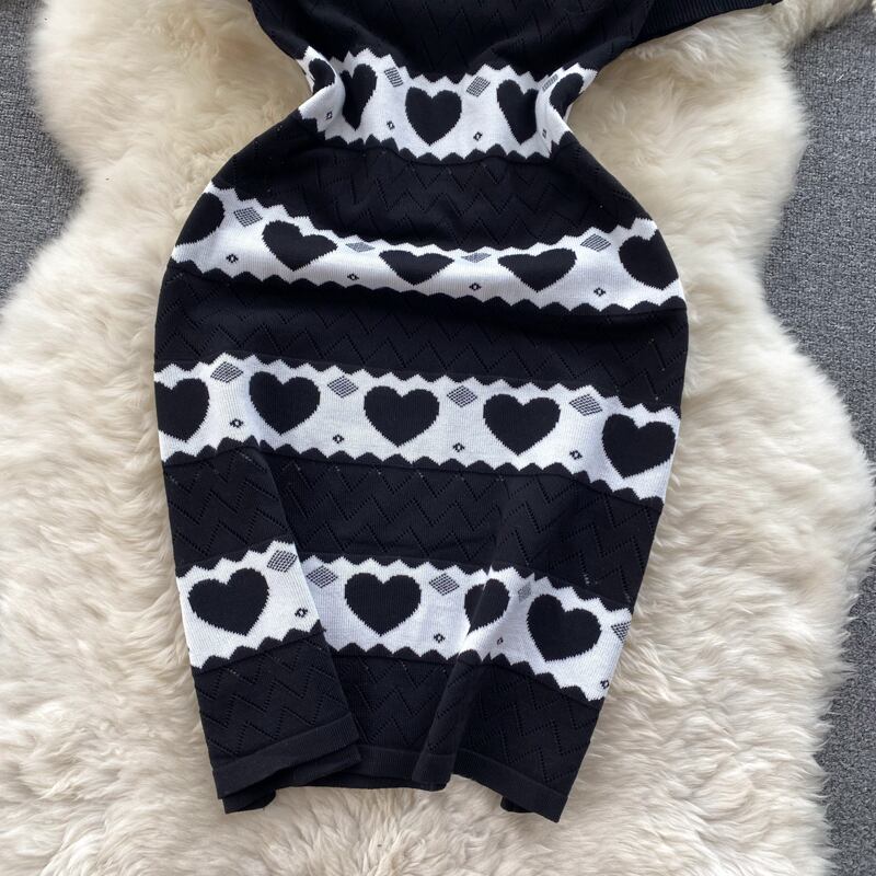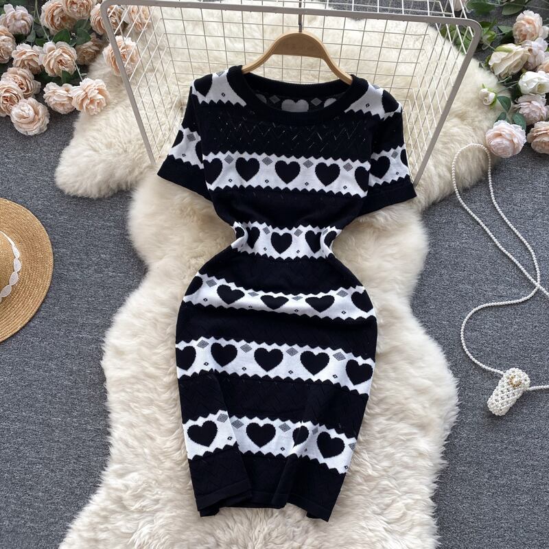 小さめ半袖ワンピース 夏物 レディース 高級感 ラブ コントラストカラー ウエストニット スリムヒップスカート サマー lyxaj51443855518