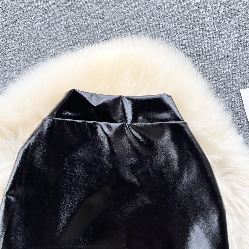 センス スリット レザー スカート女性の秋と冬の新しいハイ ウエスト a ライン スカート パッケージ ヒップ スカート pu スモール レザー スカート ハイウェスト オータム 秋物 ウィンター 冬物 Aライン lyxaj88823818291