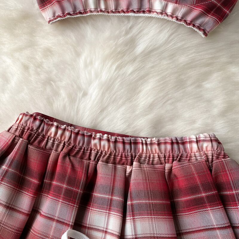 純粋な欲望スタイル学生 unim 女性のセクシーなクロススリングショートチューブトップハイウエストプリーツスカートスーツ ハイウェスト lyxaj44761136527