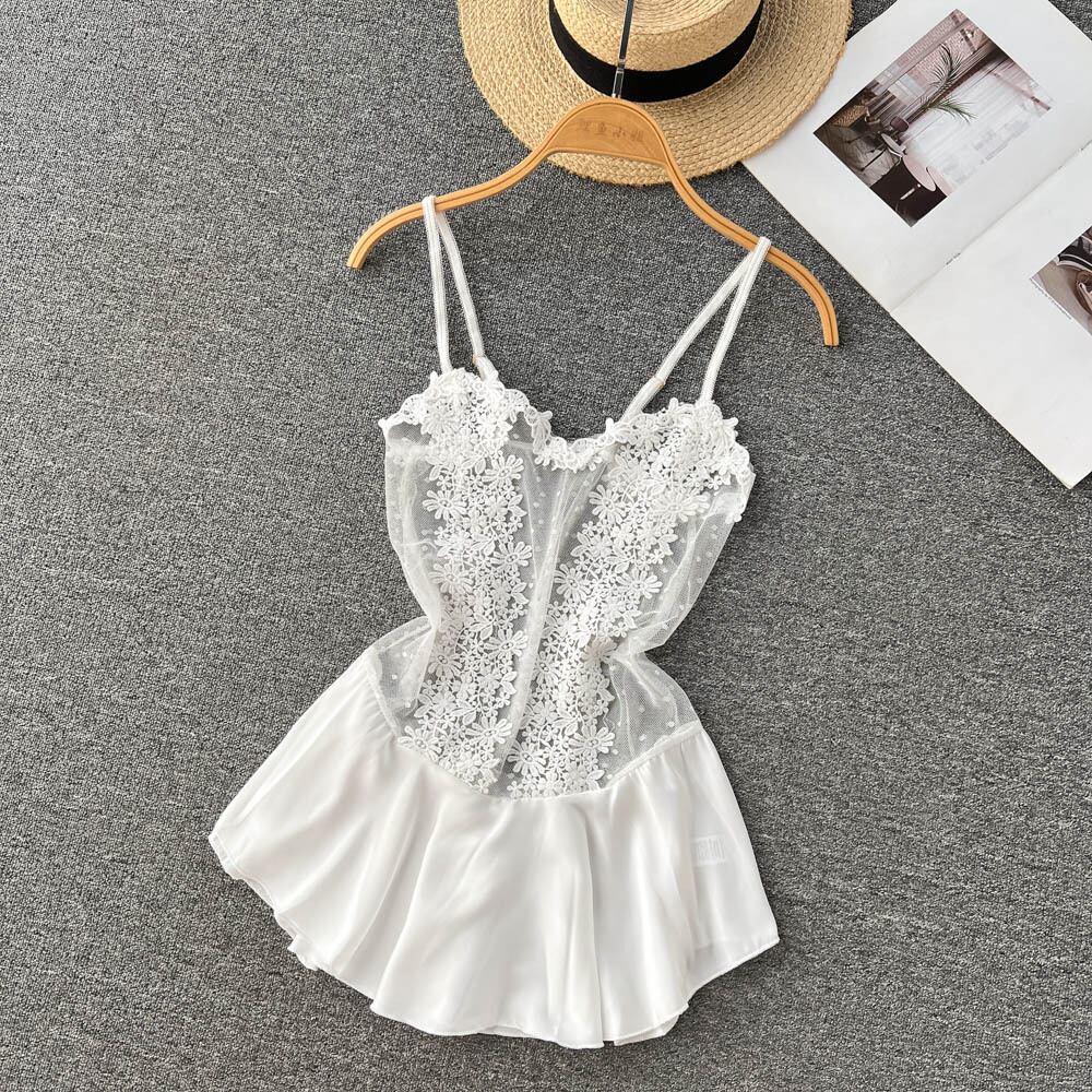 センスネット糸レース刺繍セクシーなフリルプリンセスドレス女性の腰白妖精サスペンダースカート ホワイト lyxaj82157046346