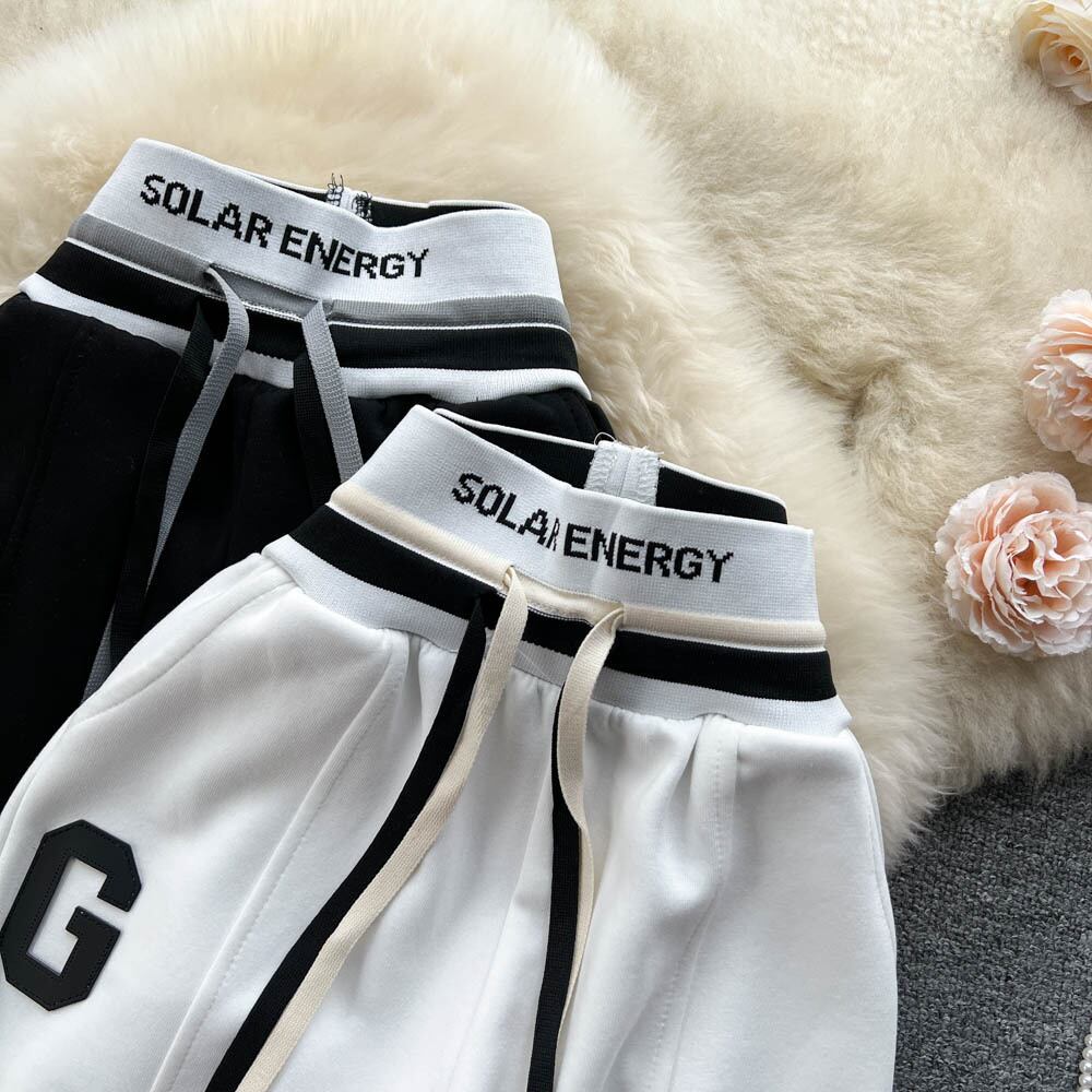 2022 秋と冬の新しいヨーロッパとアメリカのハイストリートファッションレタースプライシングパーソナライズされたハイウエストルーズカジュアルスポーツパンツと足 ハイウェスト オータム 秋物 ウィンター 冬物 ヨーロピアン lyxaj82703601056