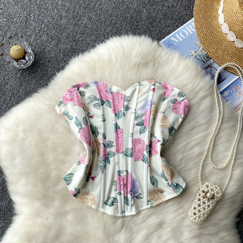 フランスのワンネックチューブトップベスト女性の夏の新しい純粋な欲望スタイルデザインセンスニッチプリントショートシックトップ サマー 夏物 ピュア lyxaj55627198049