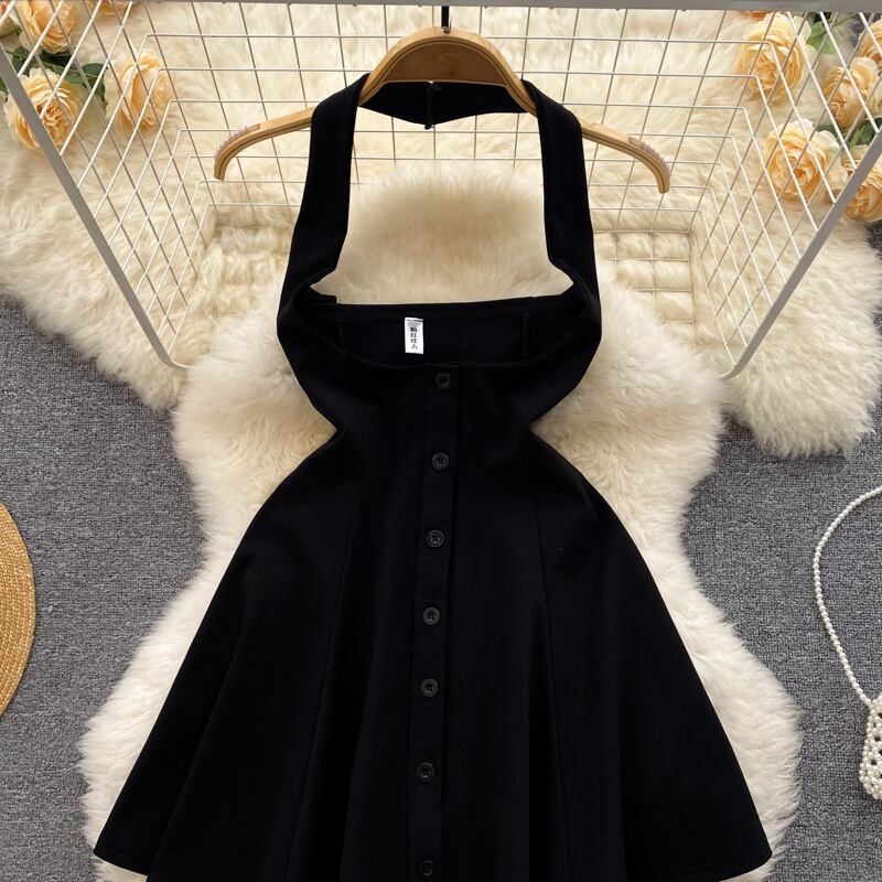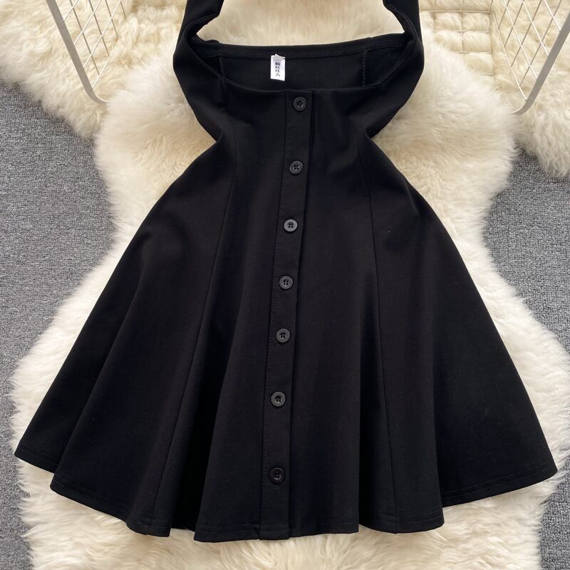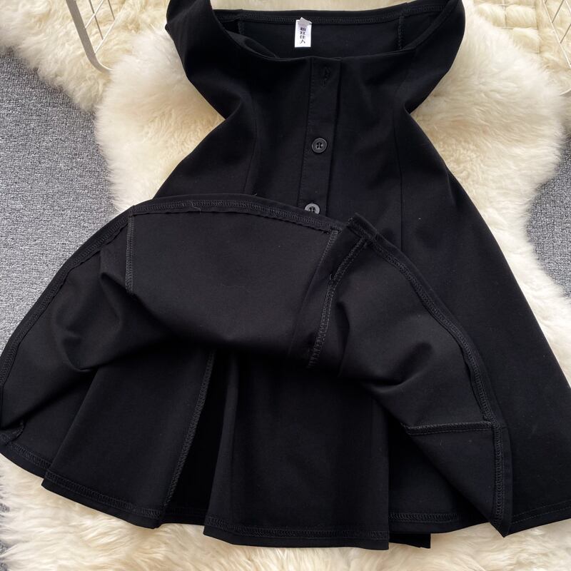 レトロスーパー妖精チューブトップドレスセクシーなハンギングネックストラップレスハイウエストスリム妖精ドレスレディ気質小さなドレススカート ハイウェスト lyxaj92594308917