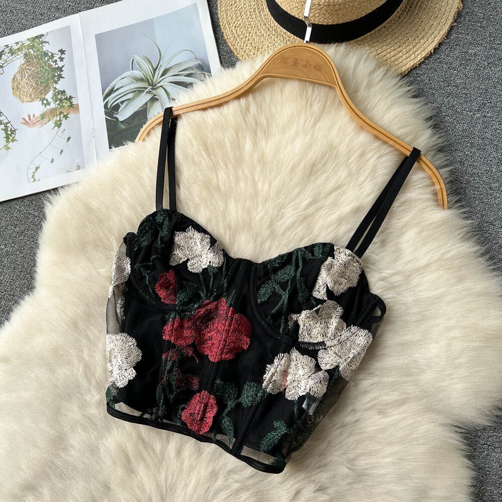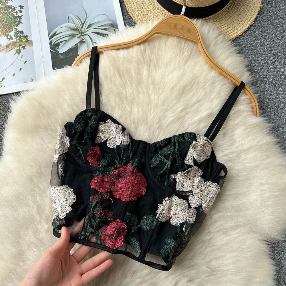 春と夏のセクシーなメッシュ レース刺繍プリント キャミソール ベスト ショート スタイル純粋な欲望スタイル シックなトップ潮 スプリング 春物 サマー 夏物 ピュア lyxaj25887351104