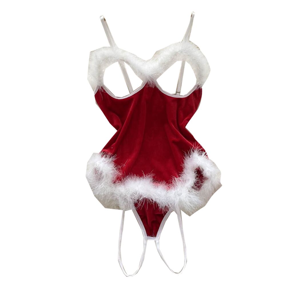 純粋な欲望スタイルのセクシーなサスペンダー中空毛皮ステッチ高 k ジャンプスーツ女性クリスマス バニー unim スーツ lyxaj35819022976
