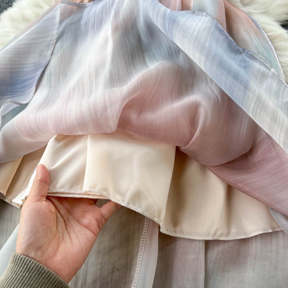 甘い初恋メッシュドレス女性 2023 夏の新しいフレンチスタイルの優しいスタイルの妖精の休日のスカートの潮 大人ガーリー スウィート キュート カジュアル サマー 夏物 lyxaj86094650245