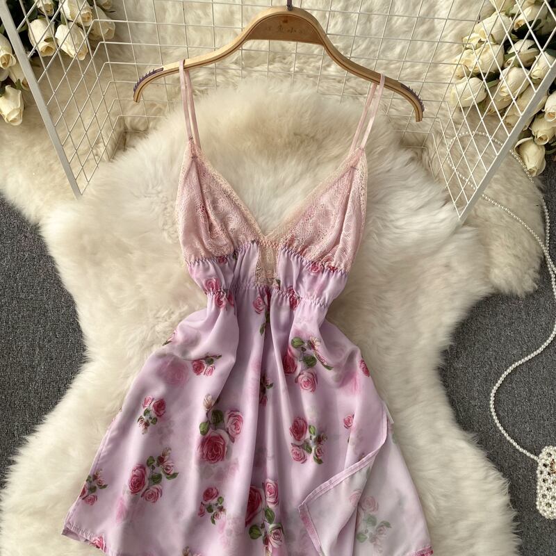 夏のセクシーな純粋な欲望風レース ステッチ プリント サスペンダー ドレス女性ハイ ウエスト a ライン スカート スカート ハイウェスト サマー 夏物 Aライン ピュア lyxaj22218422126