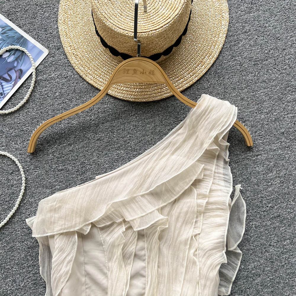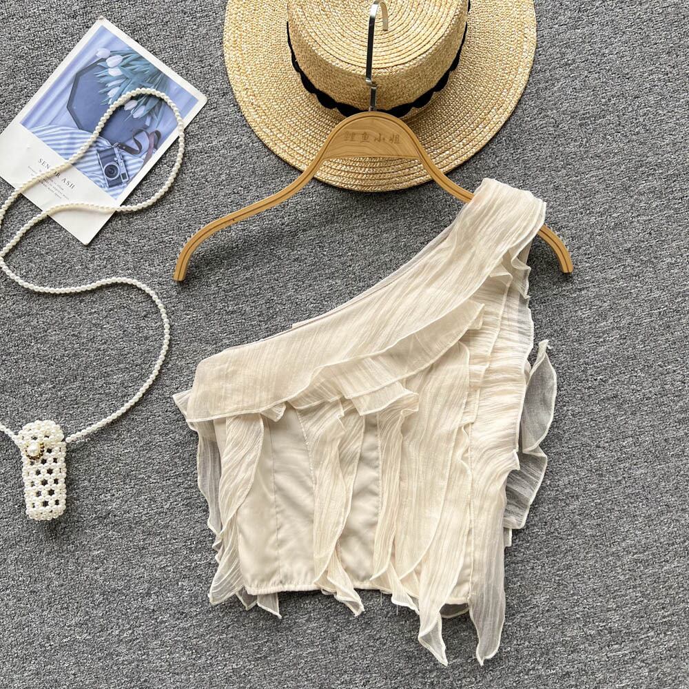 有能気質斜め肩キャミソール女性の上着 2022 夏新スタイルフリル tel ショート気質小さなシャツ サマー 夏物 lyxaj85709915846