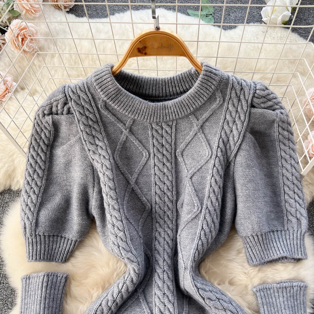 秋と冬の新しいスタイル痩身レトロパフスリーブツイストニットドレス気質セレブバッグヒップスカート袖付き オータム 秋物 ウィンター 冬物 lyxaj31667923376
