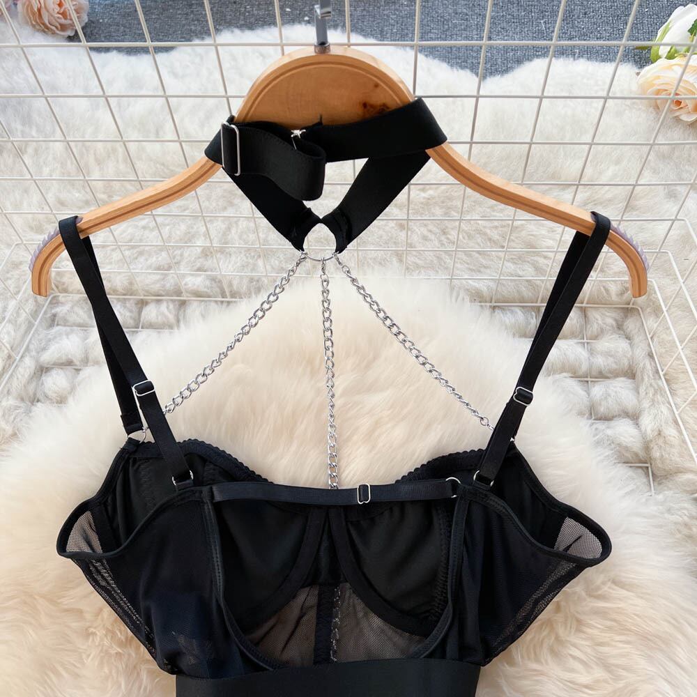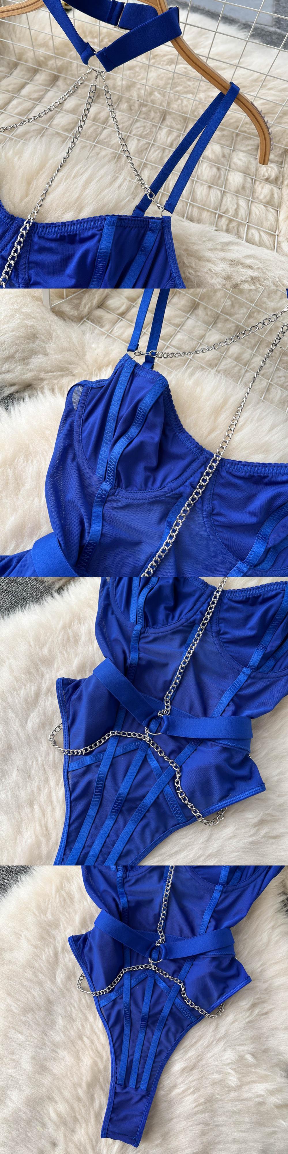 純粋な欲望風ライト調理されたかわいいレースのセクシーなロールプレイングセクシーな女性のチェーン中空ぶら下げネックハイKジャンプスーツ 大人ガーリー スウィート キュート カジュアル lyxaj36177979745