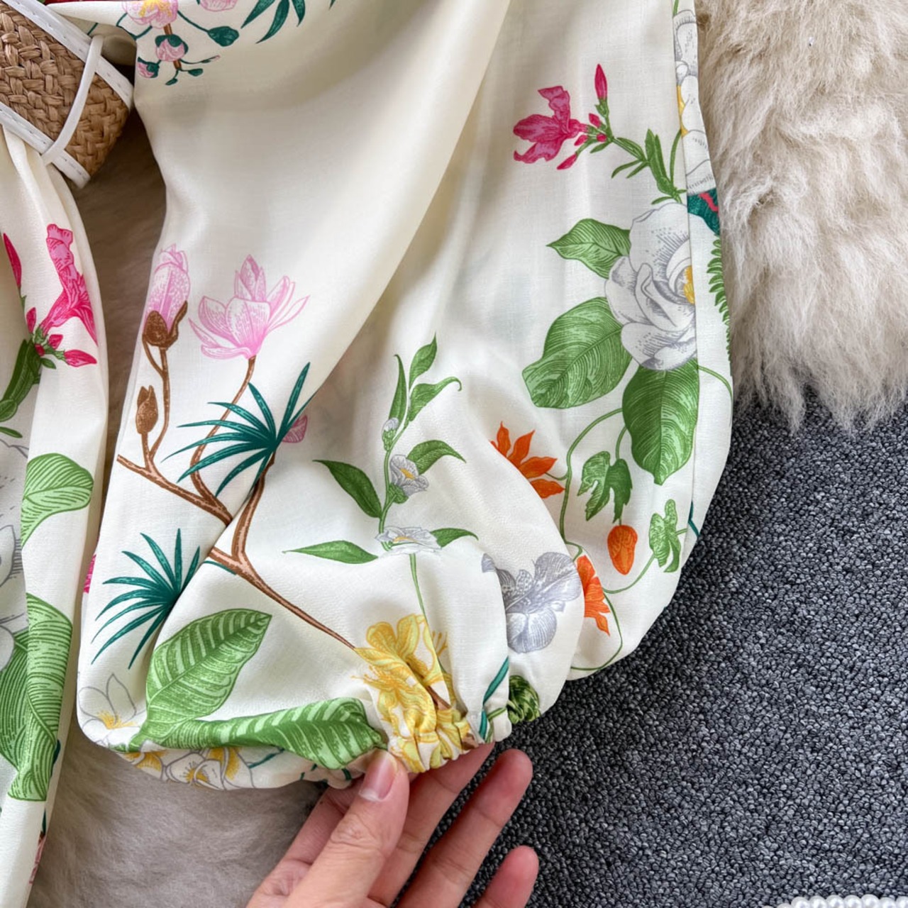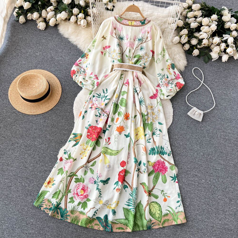 春の新民族スタイルのレトロな深い V ネック ランタン スリーブ プリント ドレス女性花柄初恋妖精ロング スカート ランタンスリーブ スプリング 春物 Vネック lyxaj21806937775