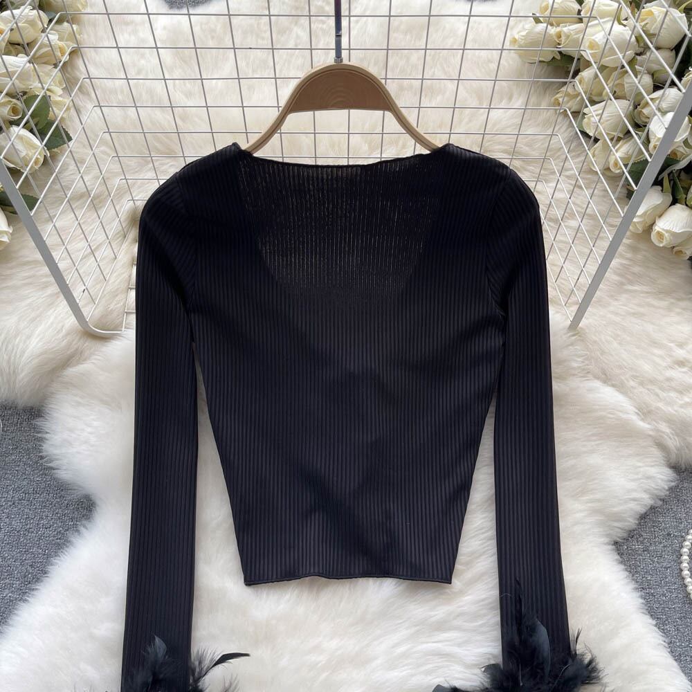 春秋新作フレンチレトロデザインセンスVネック巾着タイフェザースリーブスプライシングショートウールニットカーディガン スプリング 春物 オータム 秋物 lyxaj24326884495