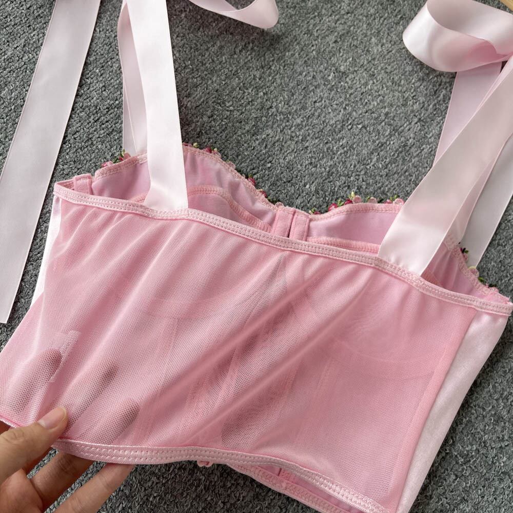夏 純情風 デザインセンス リボン 巾着 ネクタイ 中空 ショート チューブトップ ストラップトップ レディース ウエスタン風 シャツ サマー 夏物 ピュア lyxaj32520201460