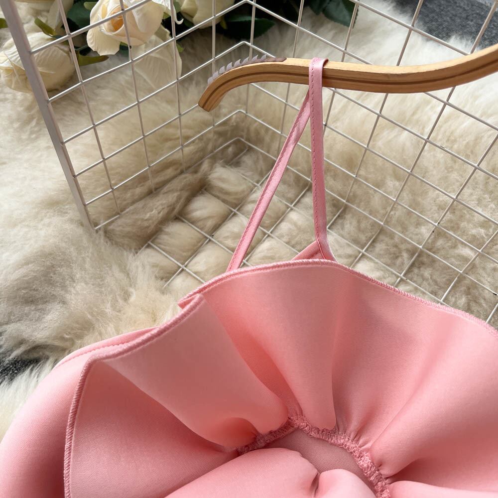 春夏新デザイン感覚立体フラワークロススリングフリルバッグヒップイレギュラーフィッシュテールドレストレンド ラッフル スプリング 春物 サマー 夏物 フラワーデザイン lyxaj31231497388