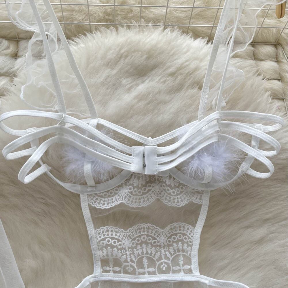 夏新純粋な欲望風メッシュレース中空セクシーな不規則なプリンセスストラップドレススーツ女性 サマー 夏物 ピュア lyxaj81637970676