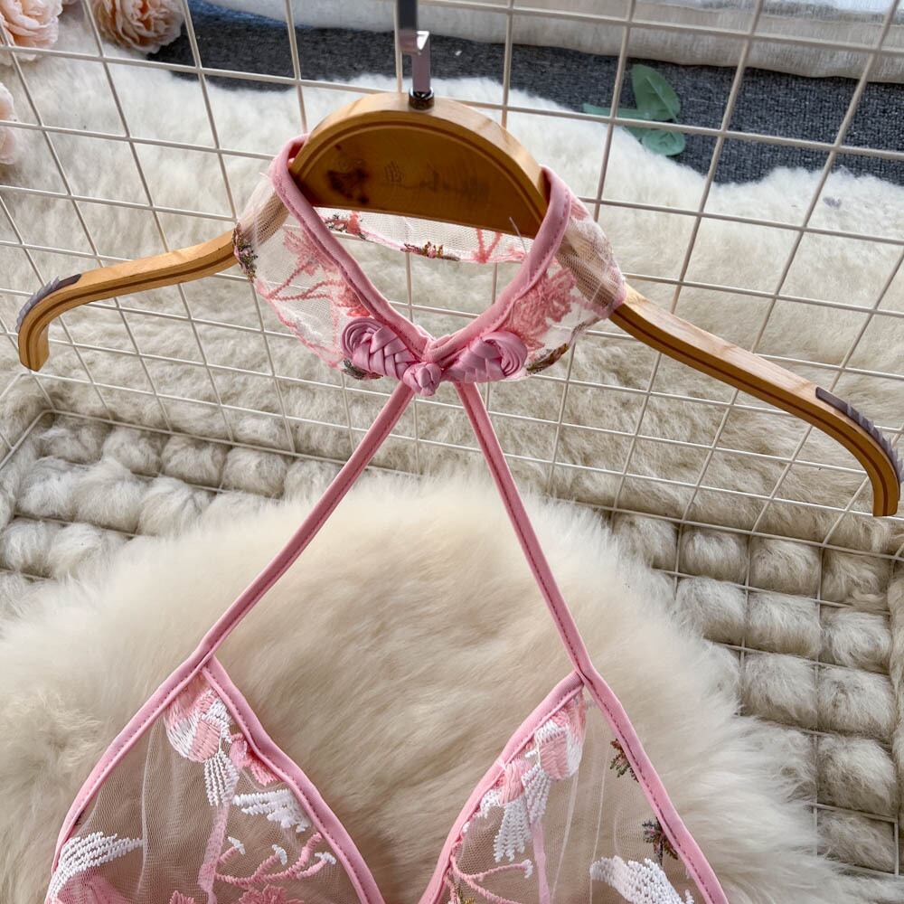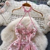 夏のセクシーなファッション透視レース中空刺繍スリット チャイナ パジャマ下着吊りネック ドレス サマー 夏物 lyxaj11919137503