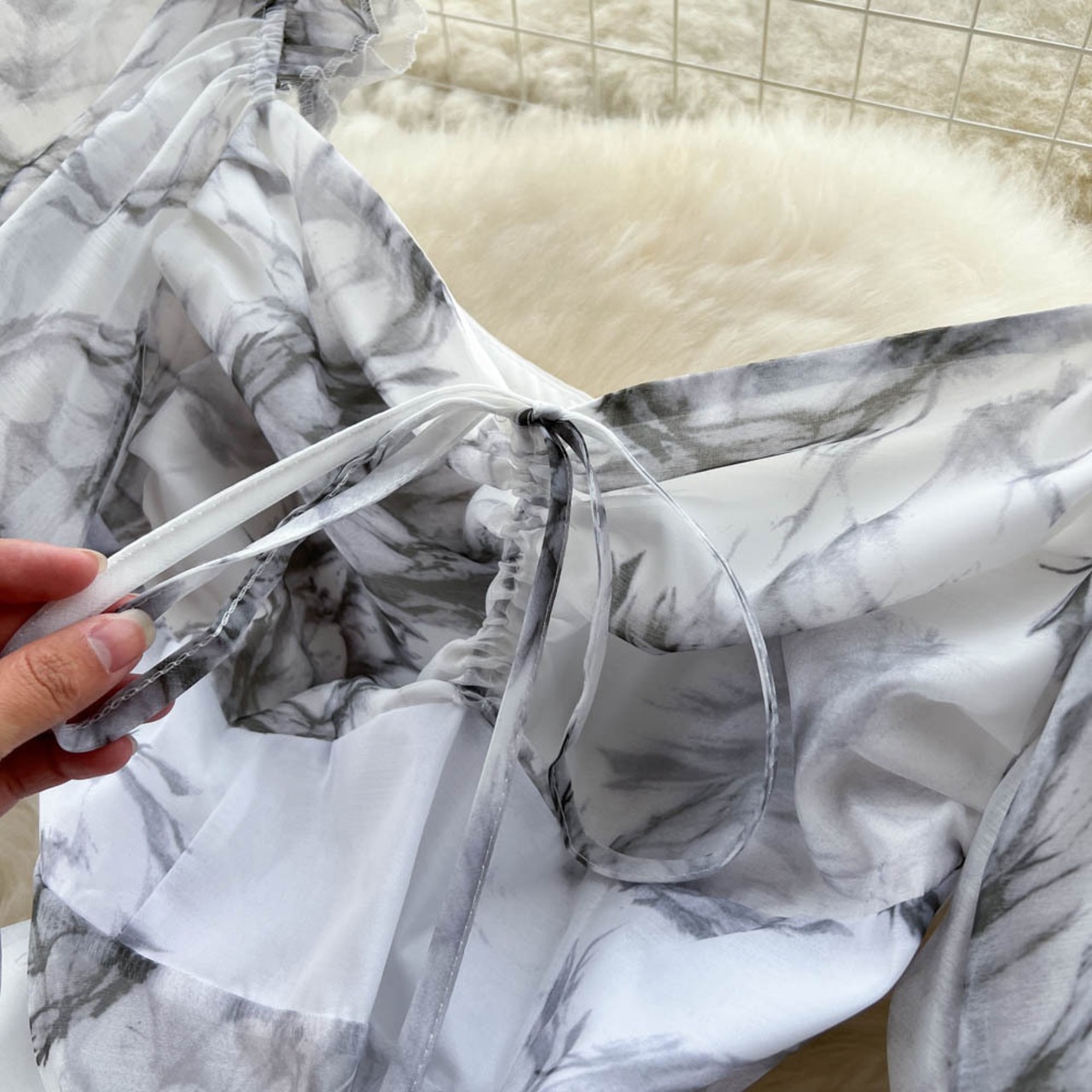 夏新作エスニック風ニッチデザインセンスフレンチインクプリントウエストスクエアカラー大振りフェアリードレスドレス サマー 夏物 スクウェア lyxaj51015215698