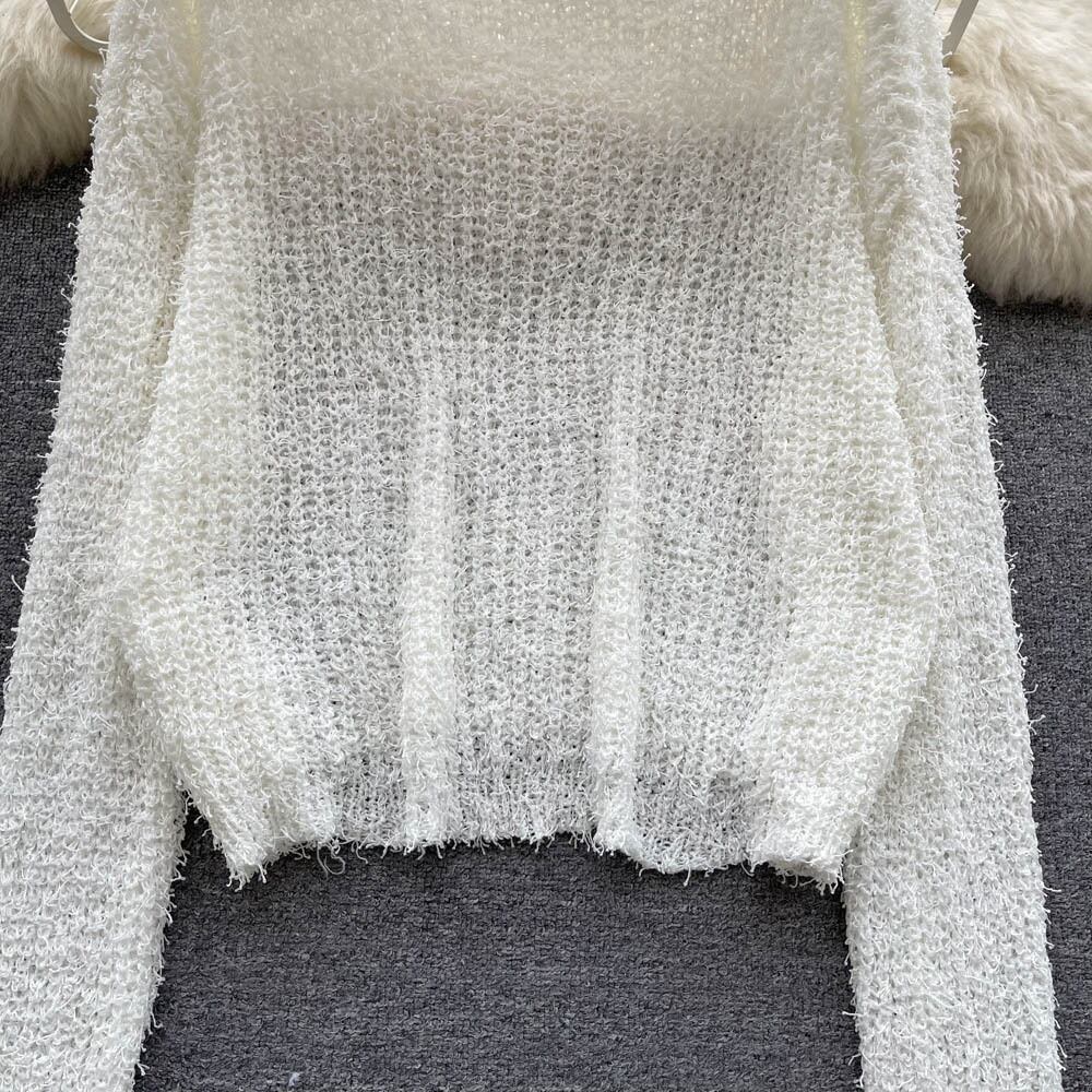 柔らかいモチモチのセーターの女性の秋と冬のシリーズの短い怠惰なセーターの純粋な欲望のゆったりとした長袖の無地のトップ ショート ロング オータム 秋物 ウィンター 冬物 ピュア ソリッドカラー lyxaj75104706934