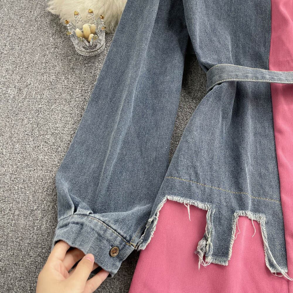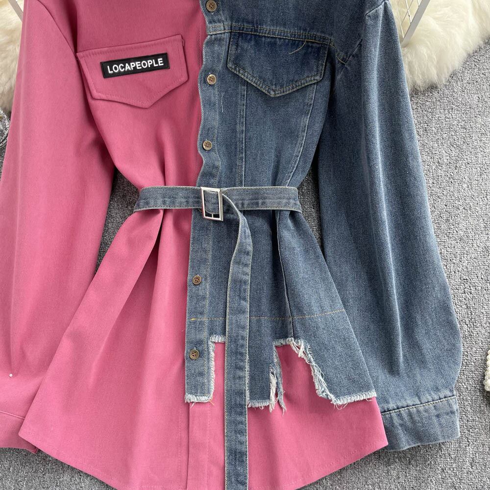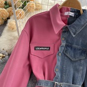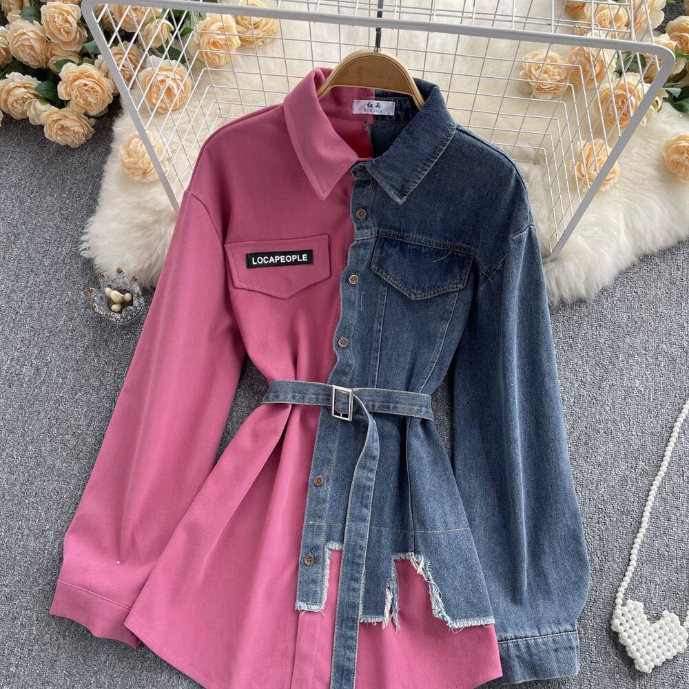 デニムステッチラペルワンピース 2022年秋冬スタイル スリムウエスト スリム イレギュラー ロングシャツ オータム 秋物 ウィンター 冬物 lyxaj42009684004