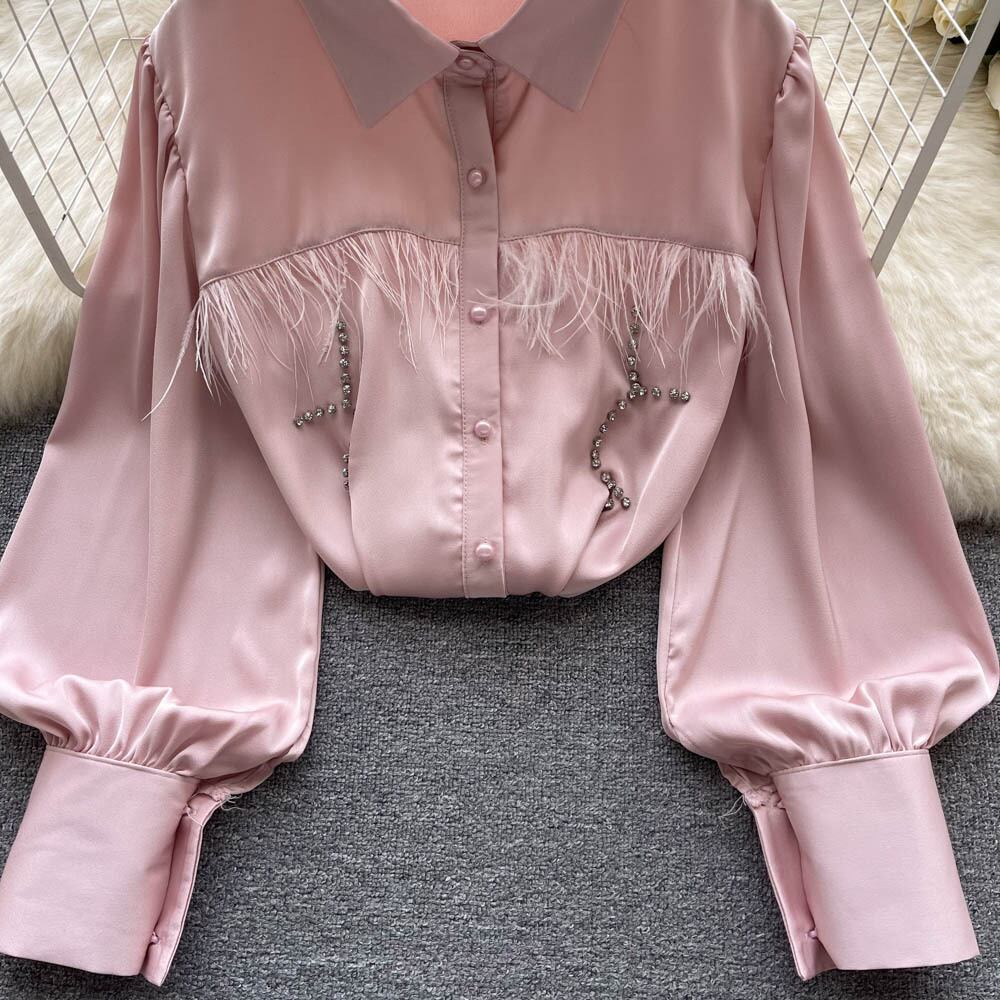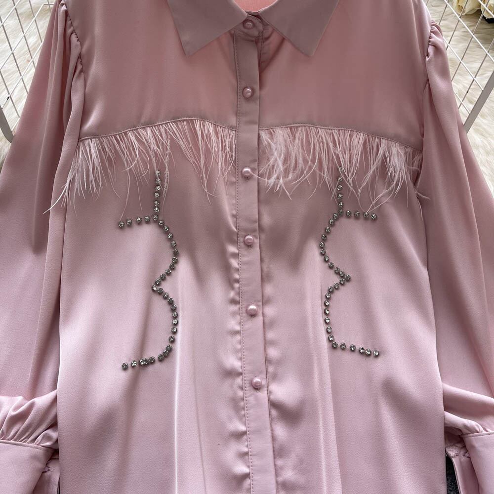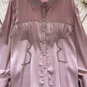 フレンチスウィートなデザインセンスニッチテルビーズ長袖シャツ 秋 レディース ゆったり 万能 洋風 トップス トレンド ロング 大人ガーリー キュート カジュアル オータム 秋物 lyxaj74343176463