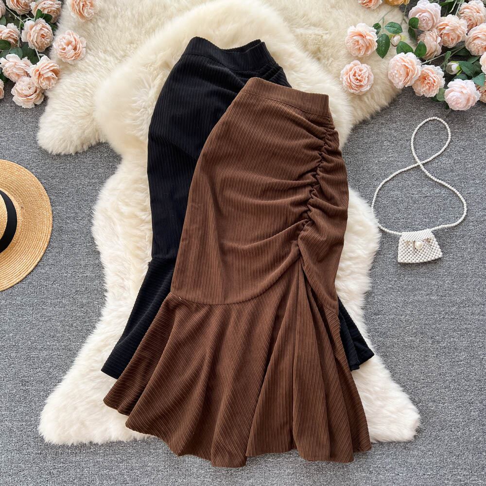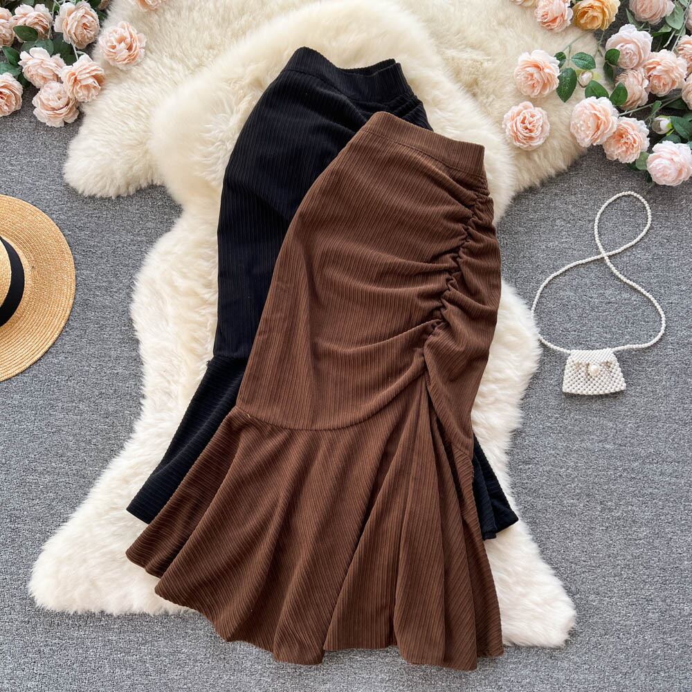 2022 秋と冬の新インデザインセンスコーデュロイスカート女性のハイウエストプリーツマーメイドスカートスリムラップヒップスカート ハイウェスト オータム 秋物 ウィンター 冬物 lyxaj95972378574