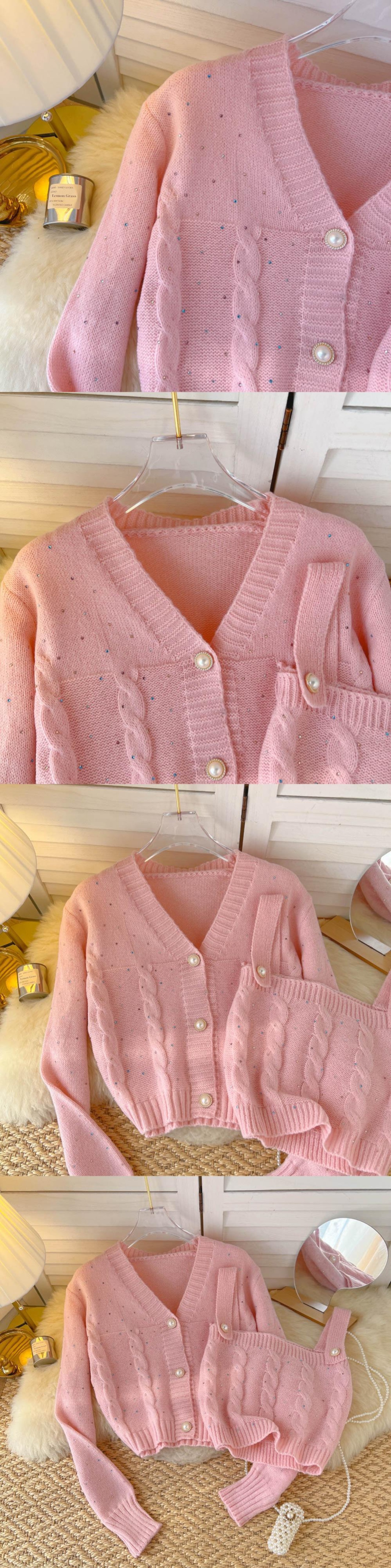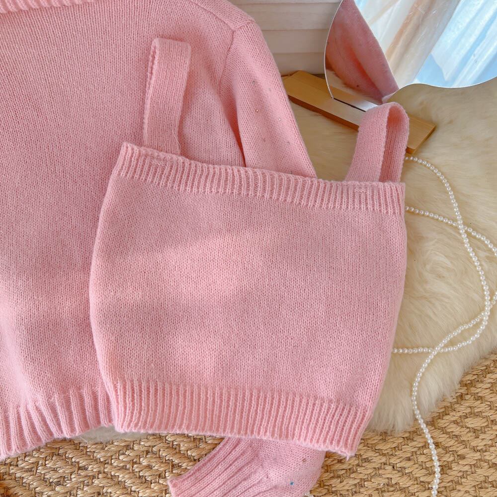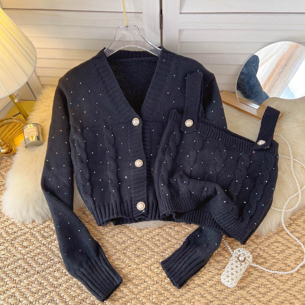 ese プレッピー スタイル ツーピース スーツ女性の秋の長袖ニット カーディガン コート トップ気質有名人キャミソール ロング オータム 秋物 lyxaj63678817729