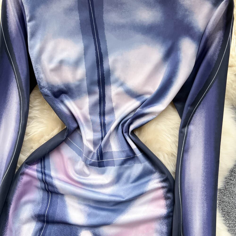 ヨーロッパとアメリカのinsスタイルの春と秋の新しいファッション個性グラデーションカラープリントラウンドネックロングスリーブセクシーヒップドレス 長袖 スプリング 春物 オータム 秋物 Oネック ヨーロピアン lyxaj52333388510