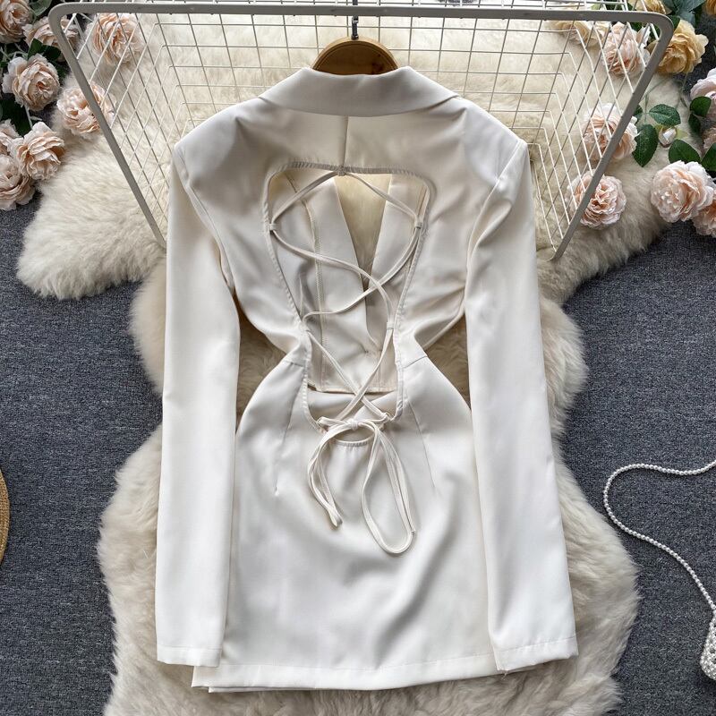 春と秋の新しい純粋な欲望風プリーツ プロフェッショナル OL サテン スーツ襟ウエスト シャツ ドレス女性ライト成熟したパッケージ ヒップ スカート スプリング 春物 オータム 秋物 ピュア lyxaj63377326417