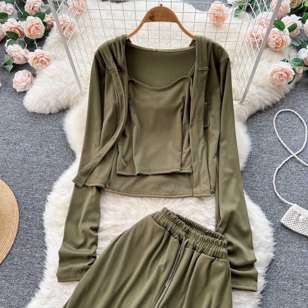 ホットウェア秋服 2022 新しい女性のスーツ長袖カーディガンジャケット小さなキャミソールカジュアルロングパンツ オータム 秋物 lyxaj88377279684