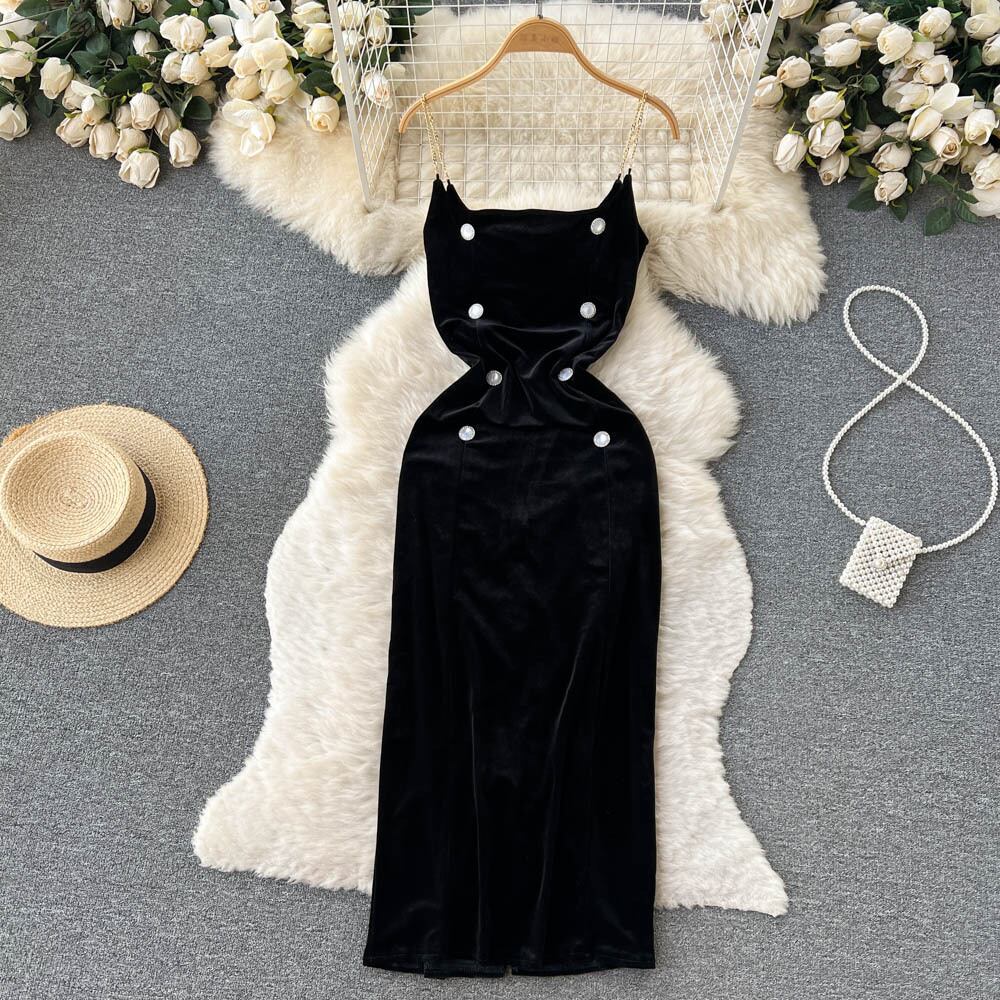 秋と冬の新しいダブルブレストレディ気質ドレススカートフェミニンなチェーンサスペンダースカートベルベットバッグヒップドレススカート オータム 秋物 ウィンター 冬物 lyxaj75748031556
