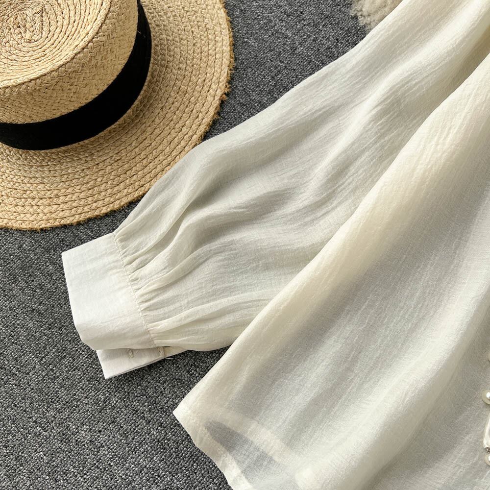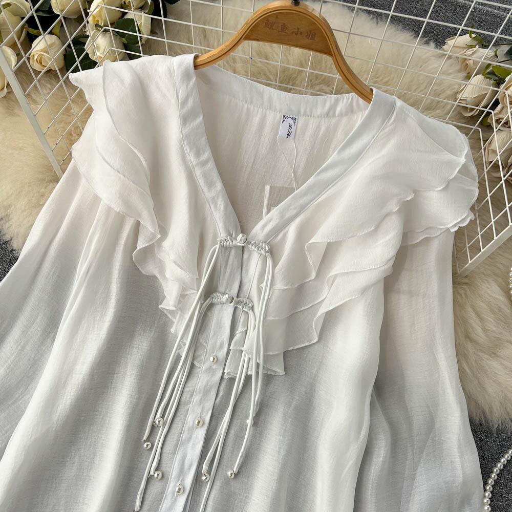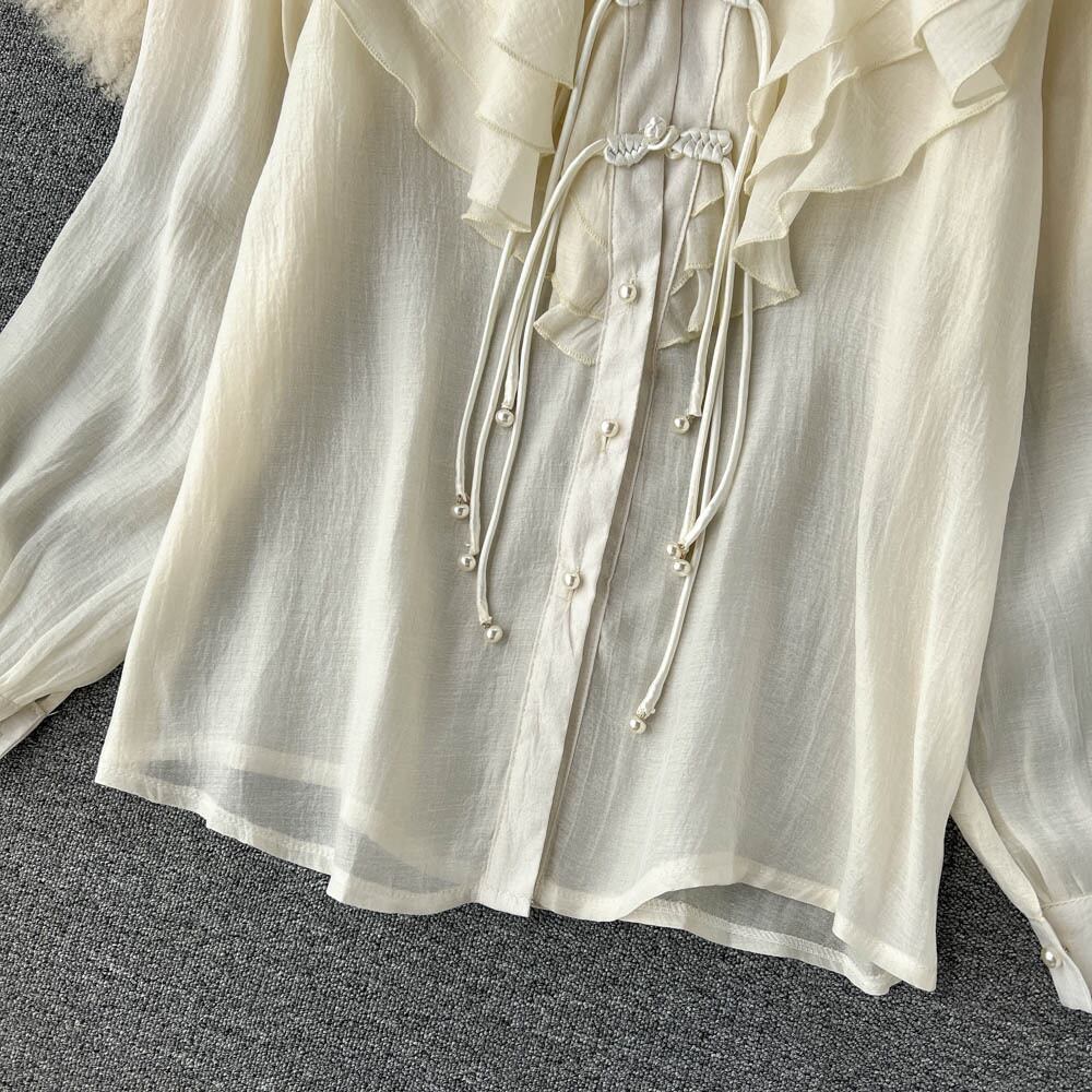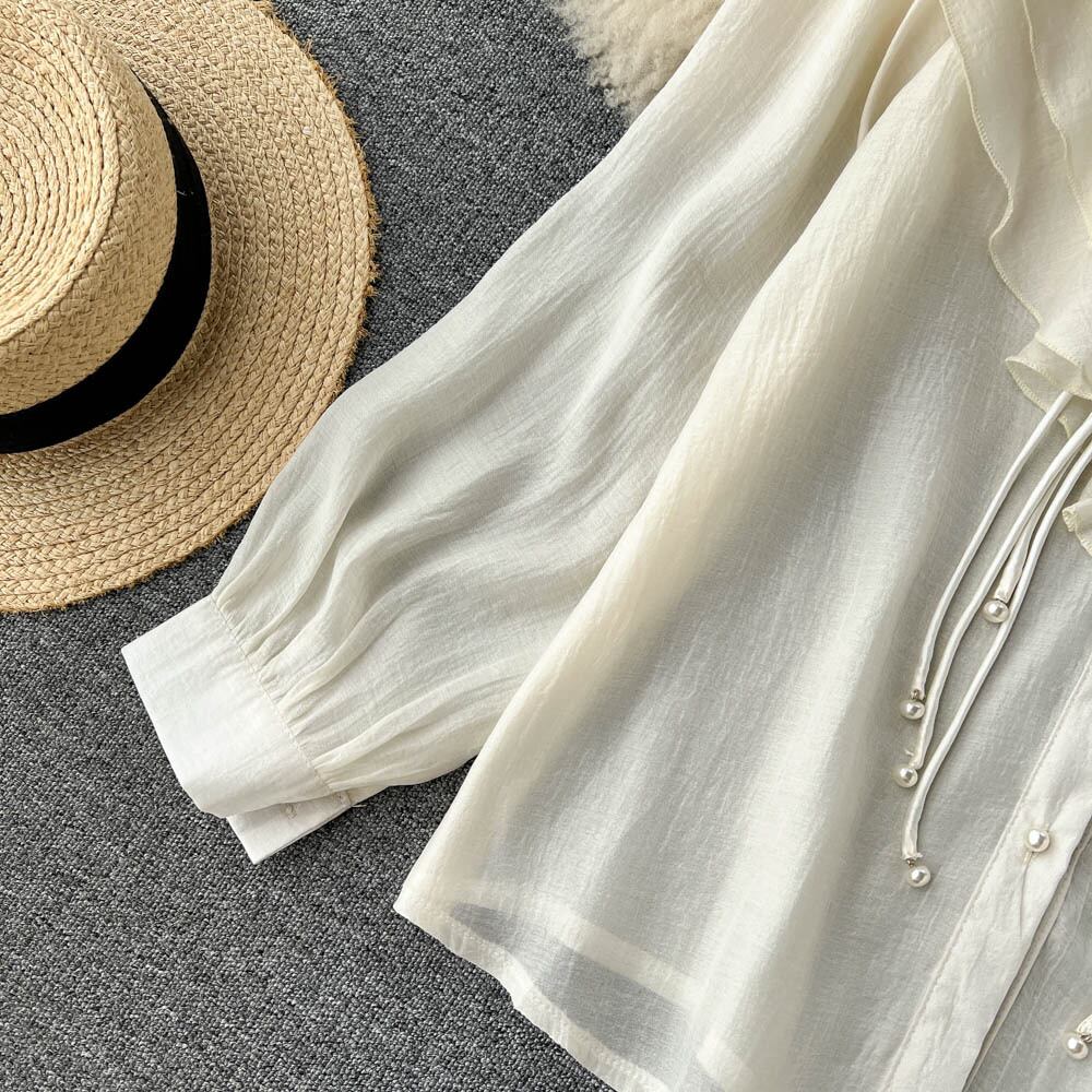 フレンチデザインセンスニッチハスリーフエッジ気質長袖シャツトップ秋の女性のゆったりとしたウエスタンスタイルの美しい小さなシャツ ロング オータム 秋物 lyxaj69814836797