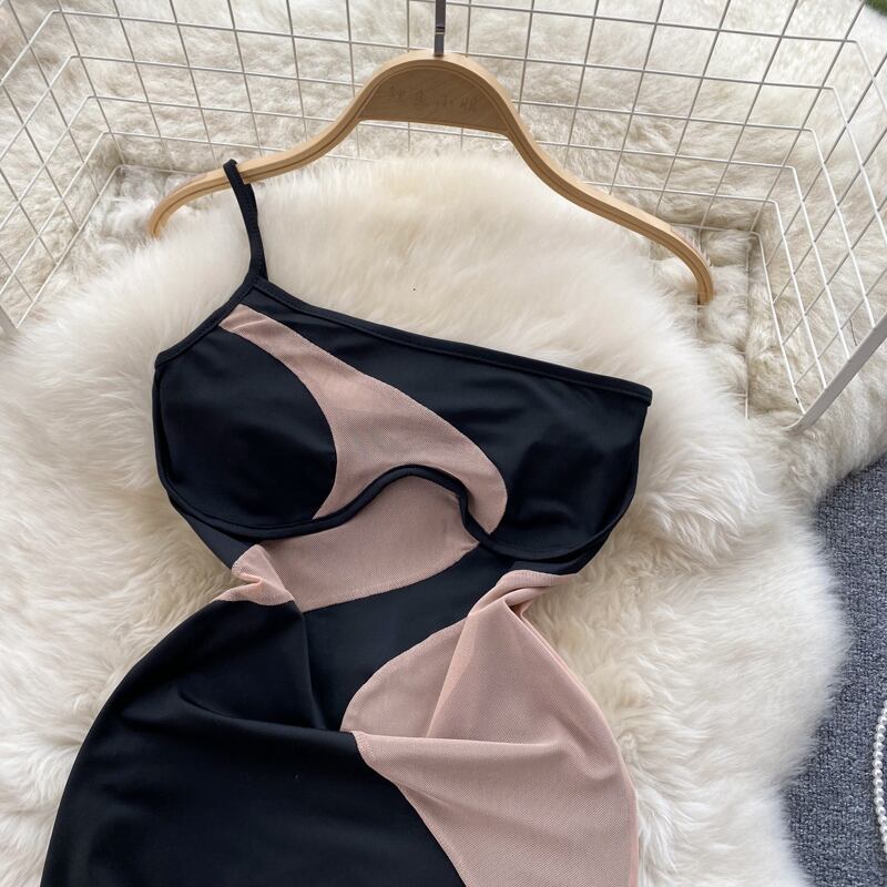 ピュアデザイストスタイルデザインセンスニッチヒットカラーワンショルダーワンピース夏新作ウエスト痩身バッグヒップスカート サマー 夏物 lyxaj32682123491