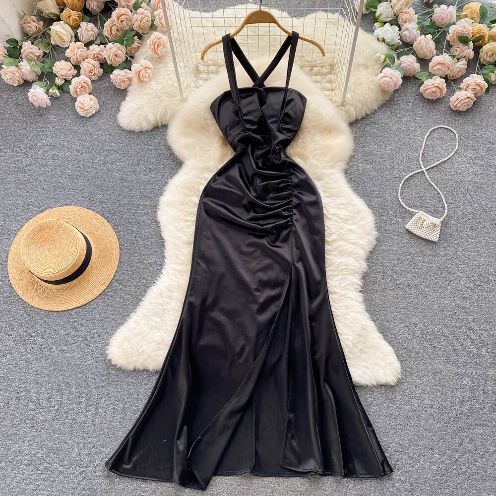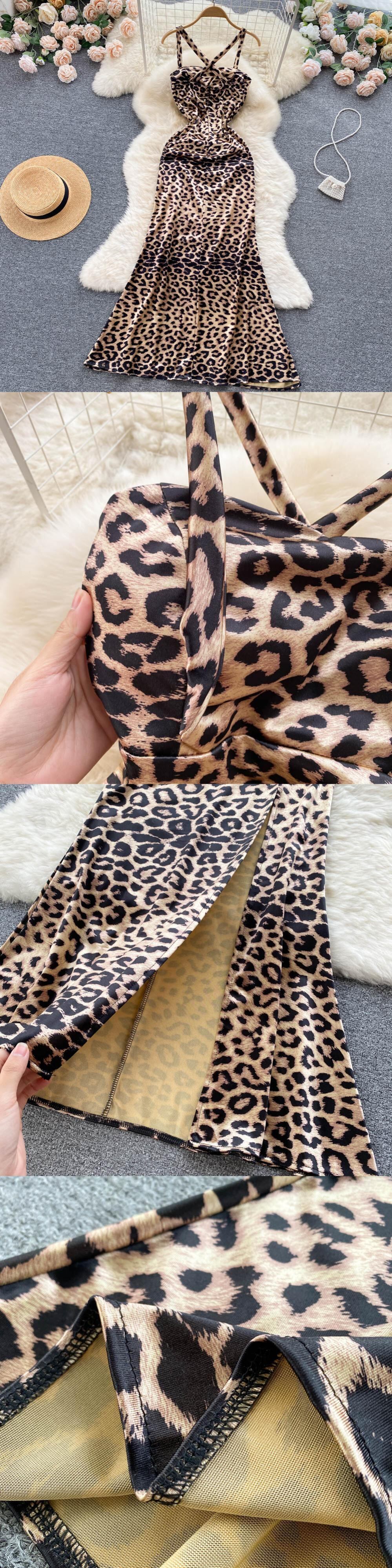 ヨーロッパとアメリカのスタイルのハイエンドな感覚ウエスト痩身サスペンダー ドレス夏の女性のヒョウ柄スリット バッグ ヒップ ドレス サマー 夏物 ヨーロピアン lyxaj89272766438