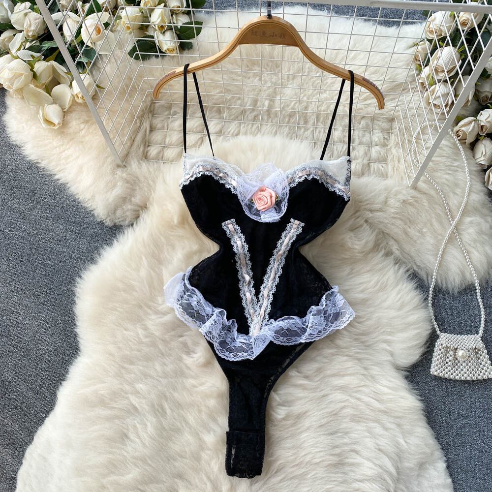純粋な欲望スタイルのセクシーなレースエッジ中空ストラップジャンプスーツ女性 2022 新気質背中の開いた底入れパンティー潮 lyxaj3120231171