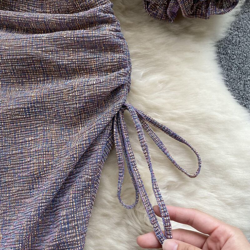 純粋な欲望スタイル秋の新しい不規則なワンショルダーバブル半袖ドレスセレブ気質ベースバッグヒップスカート オータム 秋物 lyxaj14291030141