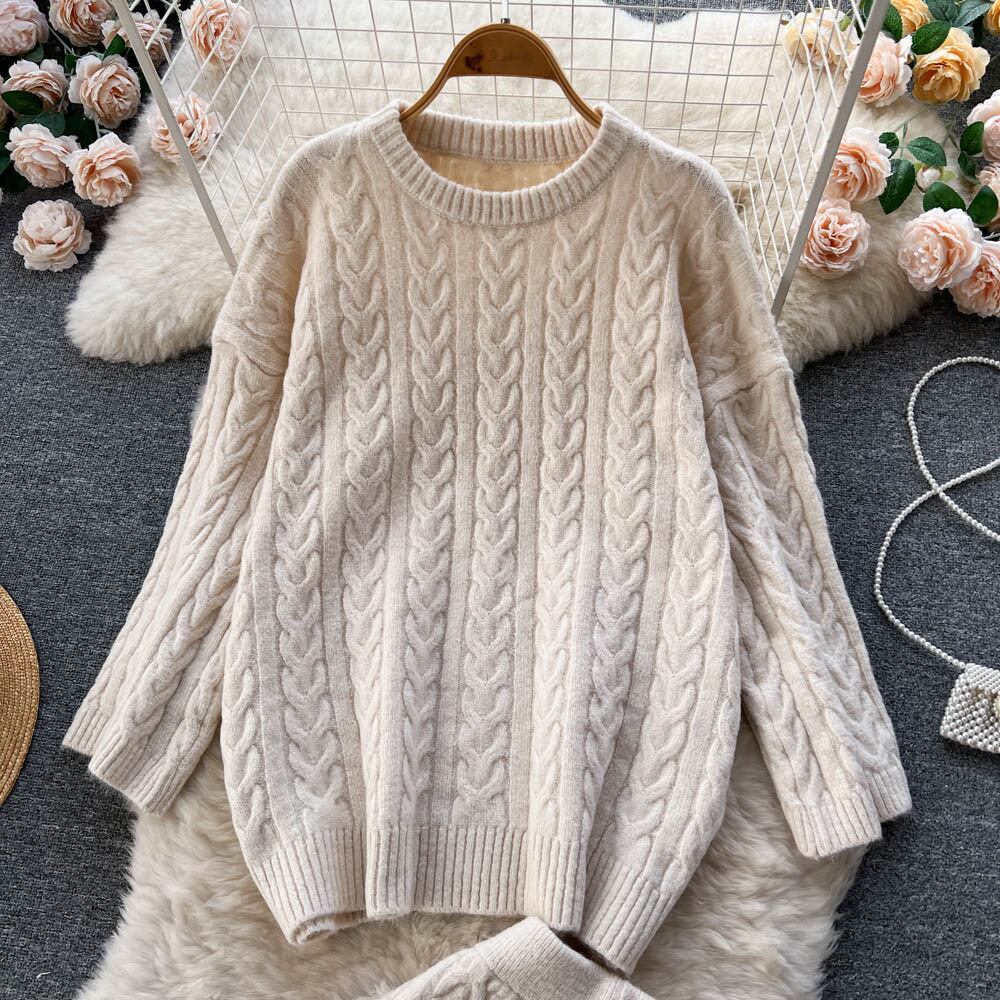秋冬新作ツイストスーツ女性怠惰なスタイルルーズプルオーバーセーターセーター+ストレート五点パンツツーピースセット オータム 秋物 ウィンター 冬物 lyxaj15120438308